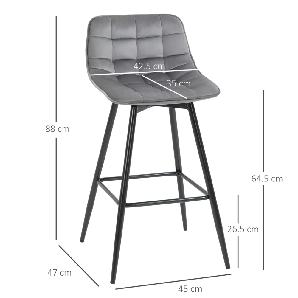 HOMCOM Σετ 2 σκαμπό μπαρ Καρέκλες με ταπετσαρία Nordic Style Γκρι βελούδο 835-271GY