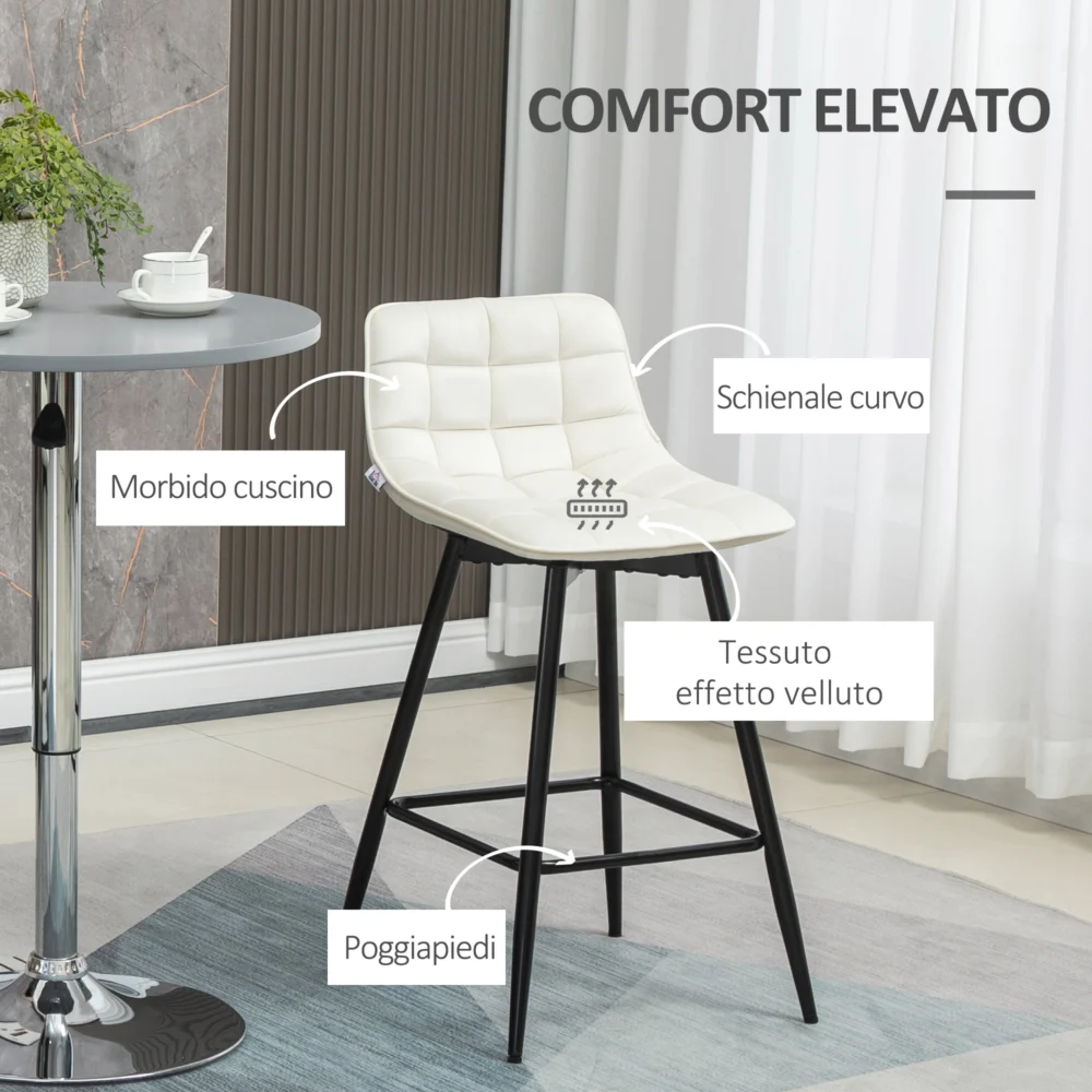 HOMCOM Σετ 2 σκαμπό μπαρ με πλάτη και υποπόδιο σε σκανδιναβικό στυλ σε μέταλλο και βελούδο, κρέμα, 45x47x88 cm 835-271V00CW