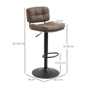 Το σετ, από την εταιρία HOMCOM, αποτελείται από 2 σκαμπό, ιδανικά για τραπεζαρία, κουζίνα, μπαρ ή εστιατόριο. Διαθέτουν μεγάλες στρογγυλές βάσεις με αντιολισθητικά και ανθεκτικά πόδια και είναι επενδυμένα με δερματίνη PU. Μπορούν να ρυθμιστούν σε ύψος, ώστε να ταιριάζουν σε κάθε πάγκο ή ψηλό τραπέζι. Το ενσωματωμένο υποπόδιο προσφέρει τέλεια υποστήριξη για να κάθεστε άνετα.