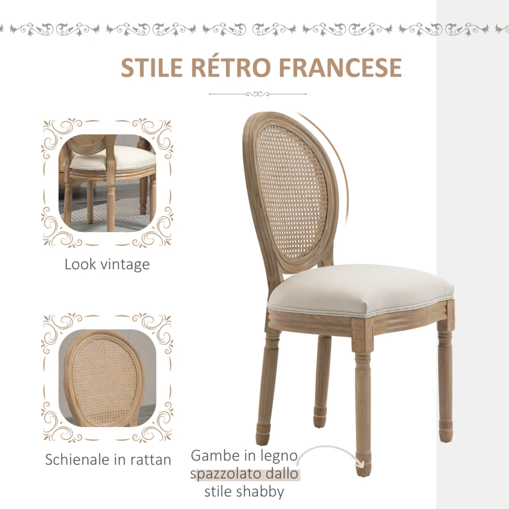 HOMCOM Σετ 2 καρέκλες σαλονιού σε στυλ Vintage με διάτρητη πλάτη, σε ξύλο και ύφασμα, 49x56x96cm – Λευκό 835-523CW