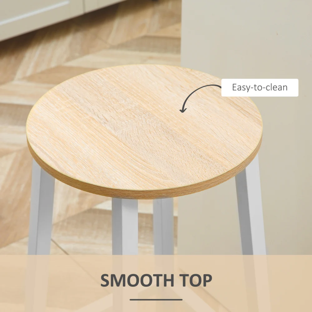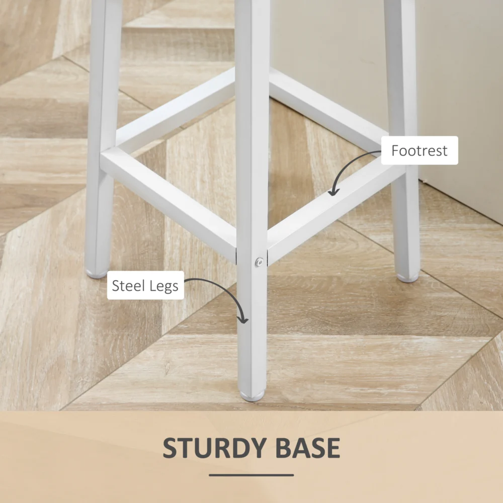 HOMCOM Σετ 2 σκαμπό κουζίνας από μοριοσανίδα και ατσάλι με λεία κορυφή και υποπόδιο, 32,5×32,5×65 cm, λευκό και ξύλο 835-616ND