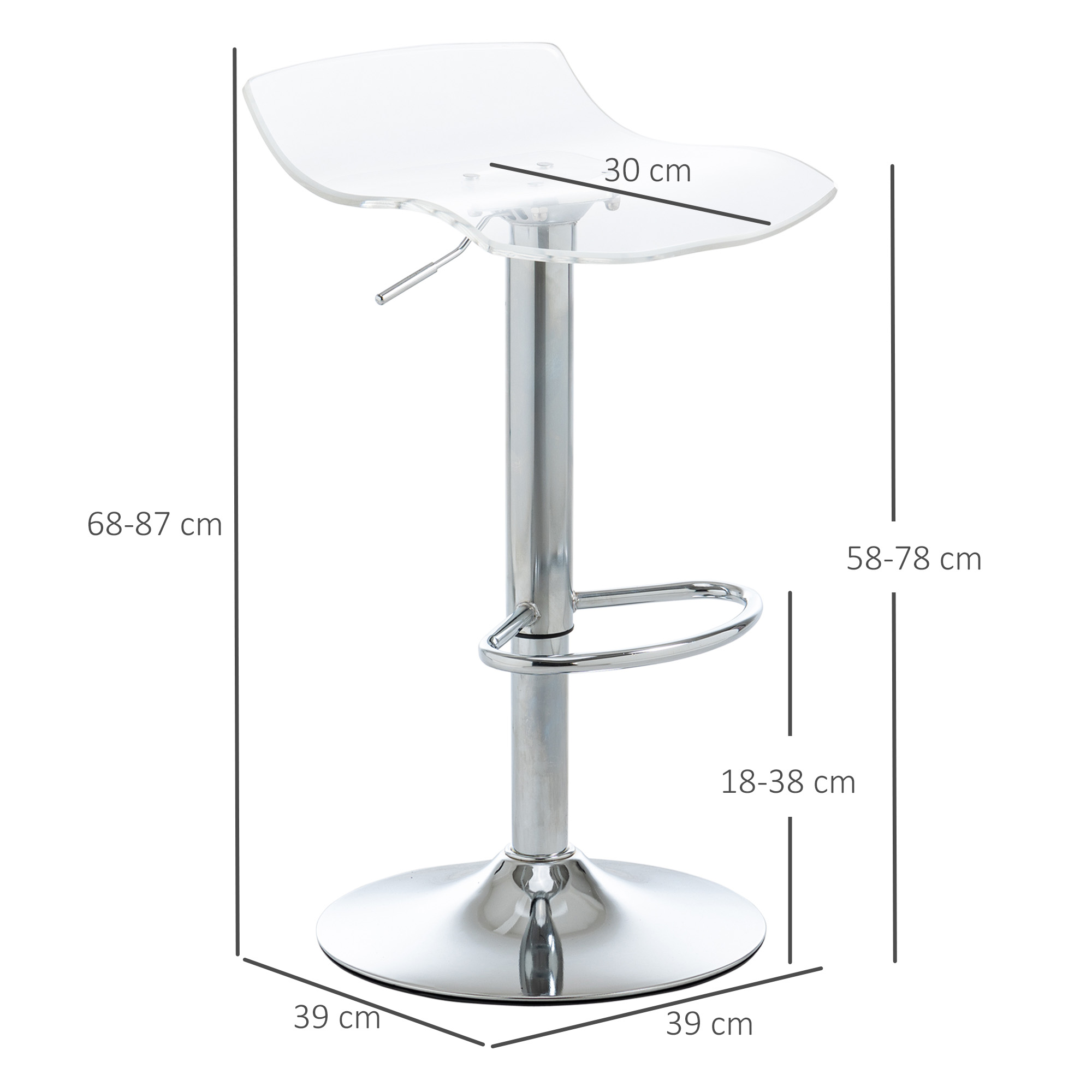 HOMCOM Σετ 2 Σκαμπό Μπαρ με Ρυθμιζόμενο Ύψος, Περιστρεφόμενο Κάθισμα και Υποπόδιο, Μέταλλο και Ακρυλικό, Διαφανές 835-622