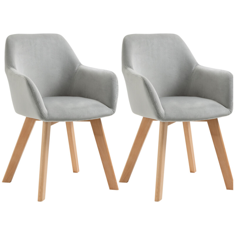 HOMCOM Σετ 2 καρέκλες τραπεζαρίας με επένδυση από βελούδο με μπράτσα και ξύλινα πόδια, γκρι 835-728V00GY