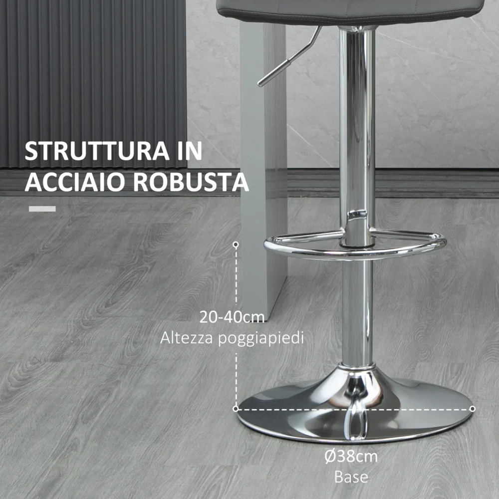 HOMCOM Σετ 2 περιστρεφόμενα σκαμπό μπαρ από συνθετικό δέρμα με πλάτη και στήριγμα ποδιών, 42x45x89-110cm, Γκρι 835-743V00GY