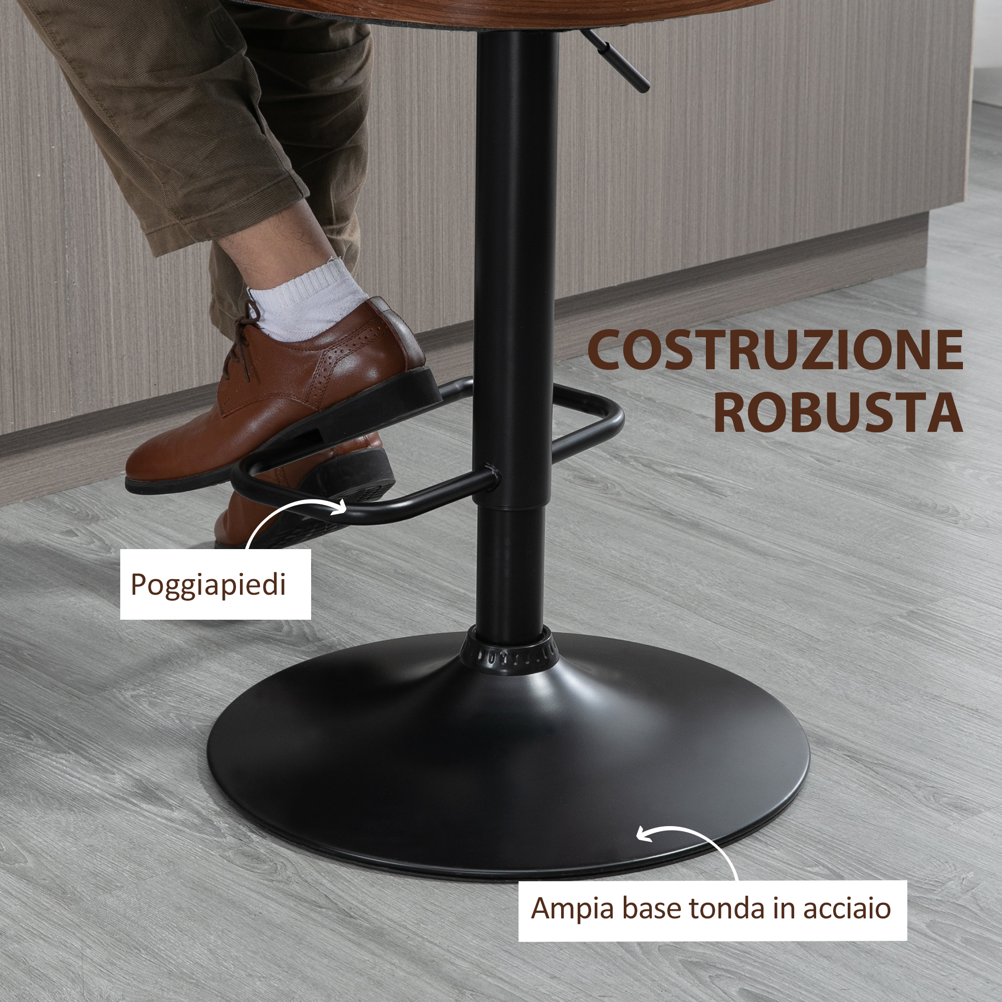 HOMCOM Σετ 2 Περιστρεφόμενα Σκαμπό Μπαρ με Ρυθμιζόμενο Ύψος για Κουζίνα και Σαλόνι, 47,5x50x93,5-116 cm, Μαύρο και Καρυδιά 835-823V00BK