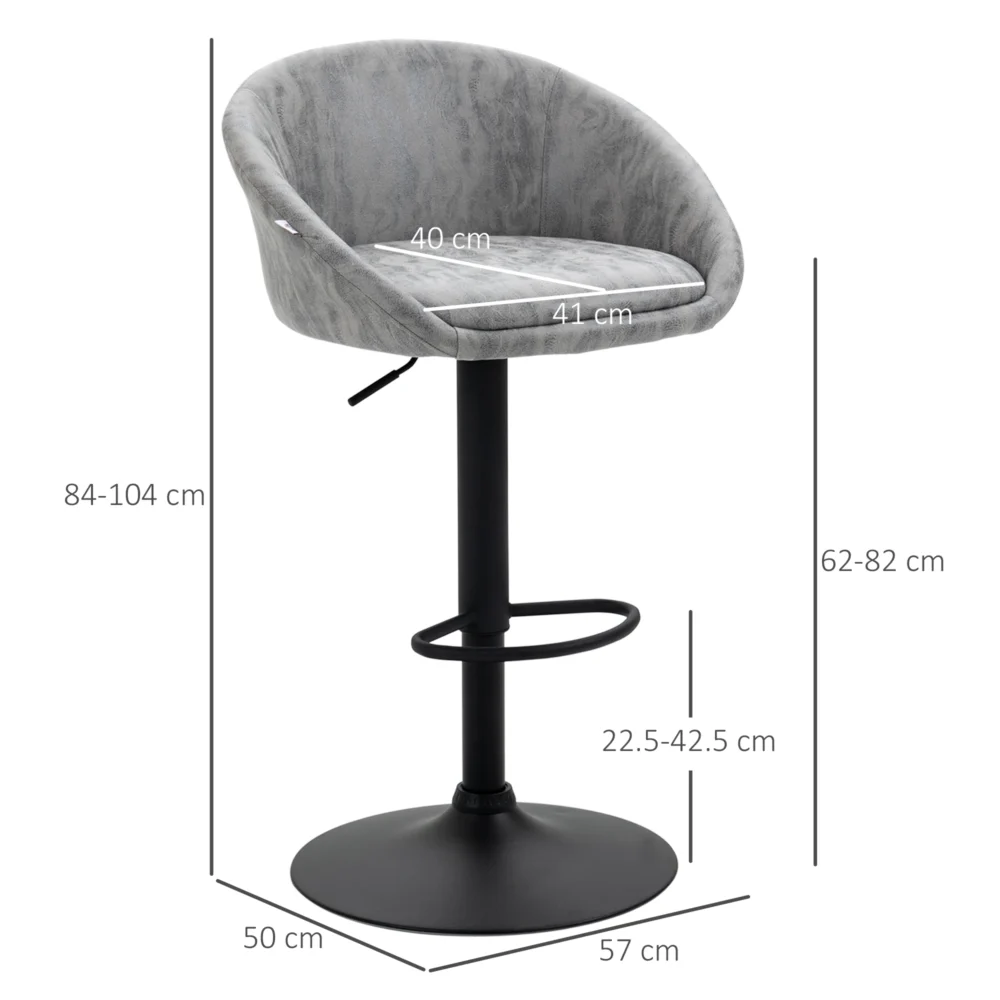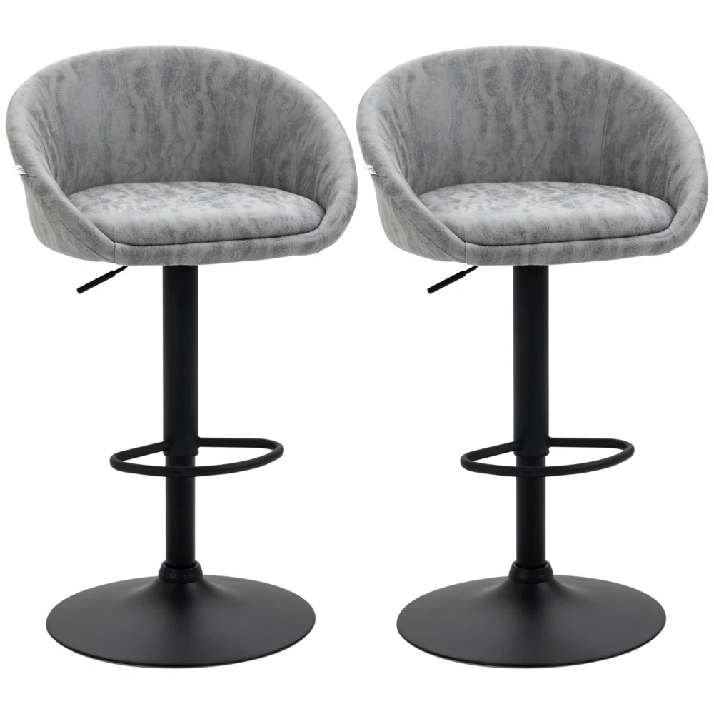HOMCOM Σετ 2 σκαμπό μπαρ με ρυθμιζόμενο ύψος, επένδυση και πλάτη από συνθετικό δέρμα, ανοιχτό γκρι 835-873V00LG