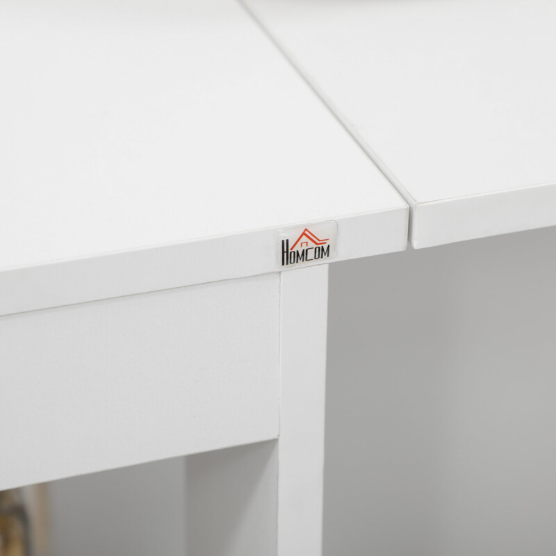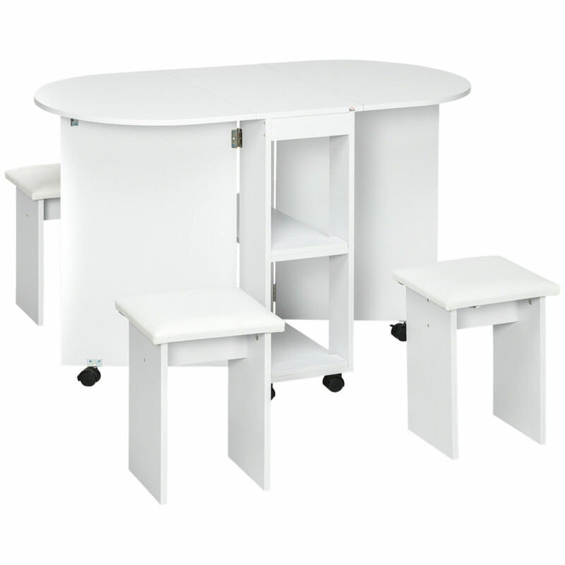 Σετ κουζίνας HOMCOM 5 τεμαχίων, Πτυσσόμενο τραπέζι με 2 ράφια και 4 σκαμπό από μοριοσανίδα, λευκό 835-955V00WT