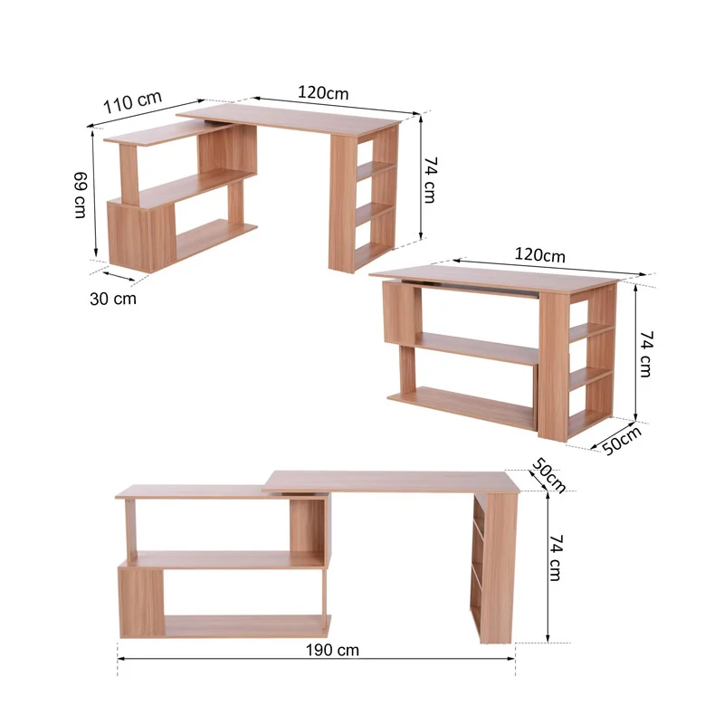 Πολυμορφικό Ξύλινο Γωνιακό Γραφείο με 5 Ράφια 140 x 120 x 78.2 cm HOMCOM 836-074