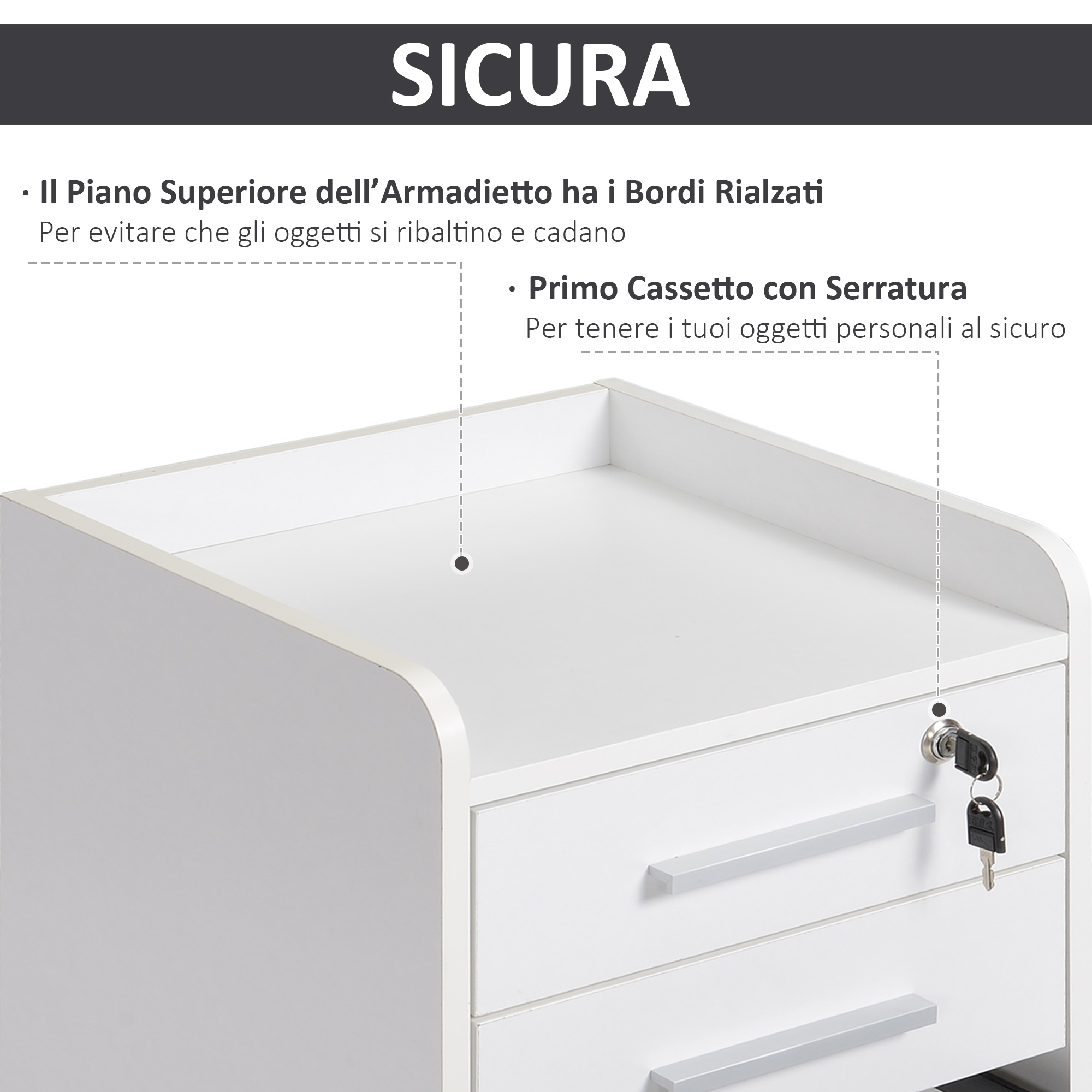 HOMCOM Λευκή Ξύλινη Συρταριέρα γραφείου με κλειδιά και 3 συρτάρια 836-238