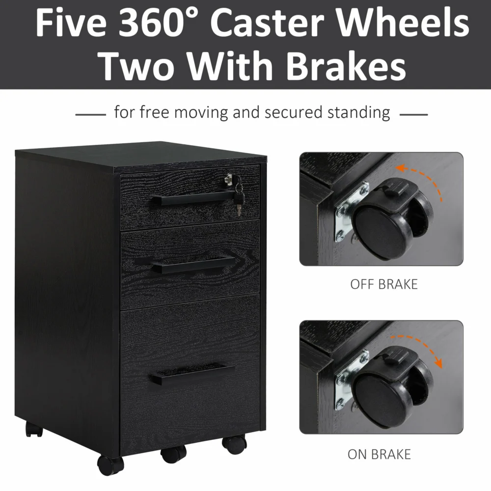 HOMCOM θήκη εγγράφων γραφείου με 3 συρτάρια 5 ρόδες Μαύρο 39,2x40x65,4cm 836-239