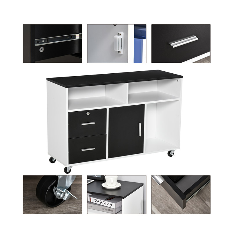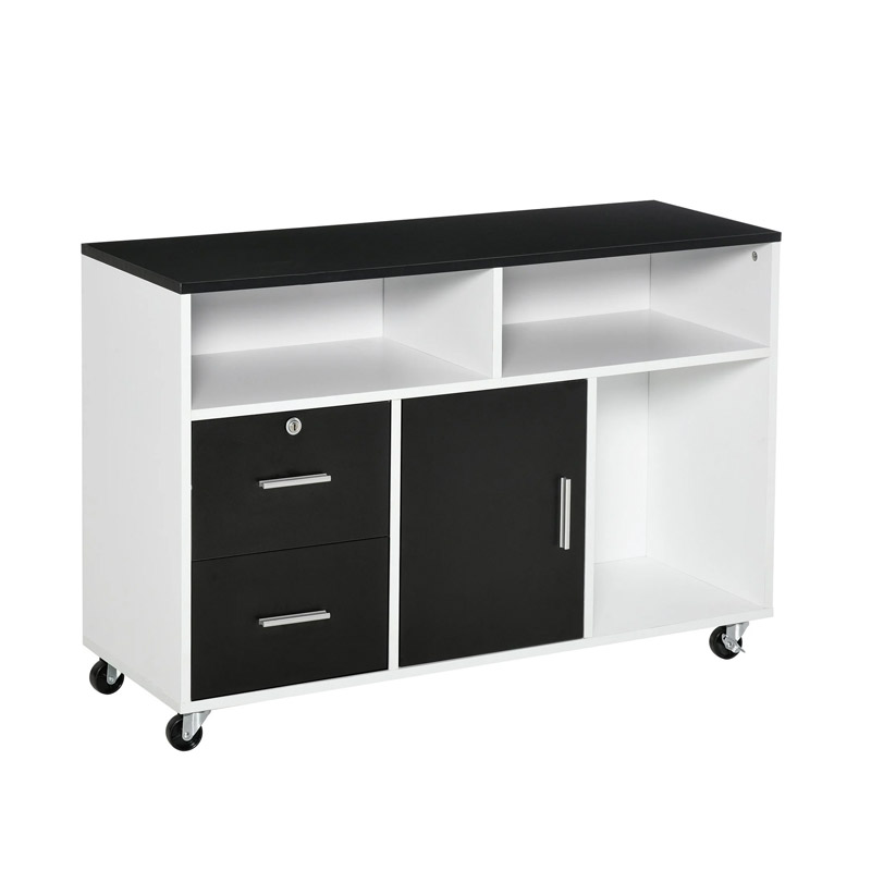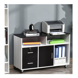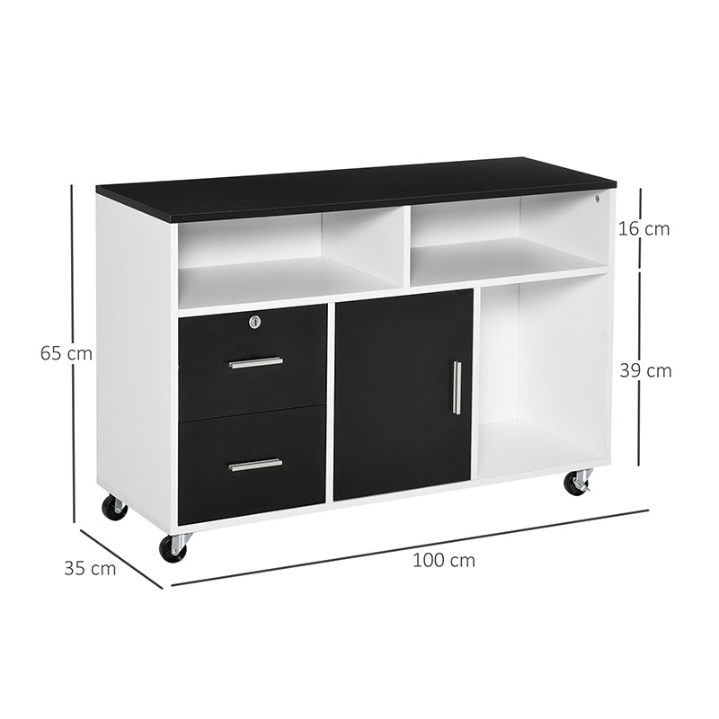 Τροχήλατο Ξύλινο Έπιπλο Γραφείου με 1 Ντουλάπι 3 Ράφια και 2 Συρτάρια 100 x 35 x 65 cm HOMCOM 836-269BK