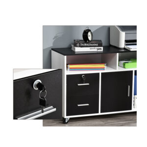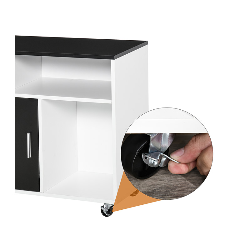 Το έπιπλο γραφείο, από την εταιρία HOMCOM, είναι ιδανικό για την τοποθέτηση του εκτυπωτή σας και των εγγράφων, την αποθήκευση βιβλίων, περιοδικών και χαρτικών. Οι 4 τροχοί, 2 εκ των οποίων με φρένα, σας επιτρέπουν να το τοποθετήσετε στα σημεία του δωματίου που προτιμάτε.