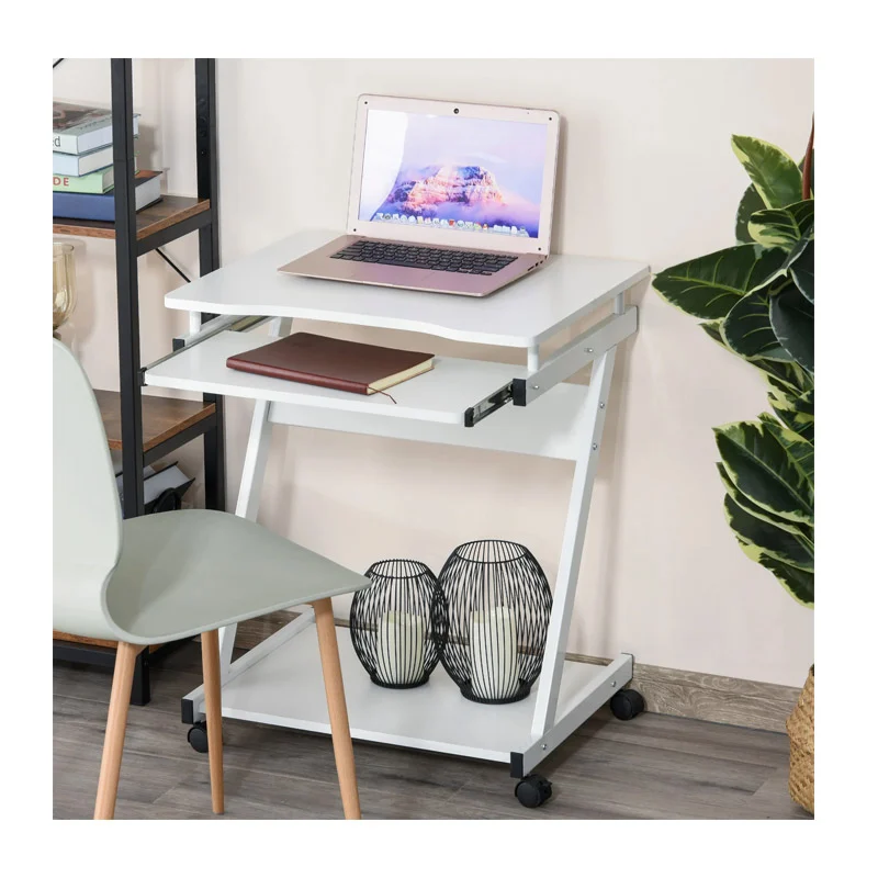 Το γραφείο υπολογιστή, από την εταιρία HOMCOM, είναι κατασκευασμένο από μέταλλο και μοριοσανίδα Ε1, είναι ανθεκτικό και εύκολο στον καθαρισμό. Χάρη στο μικρό του μέγεθος μπορείτε να το χρησιμοποιήσετε τόσο στο γραφείο όσο και στο σπίτι. Διαθέτει αφαιρούμενη θέση για το πληκτρολόγιο και ένα κάτω ράφι για αποθηκευτικό χώρο. Με 4 τροχούς (όλοι με φρένα) και χάρη στο μινιμαλιστικό του στυλ ταιριάζει απόλυτα με τα έπιπλα του σπιτιού ή του γραφείου σας.
