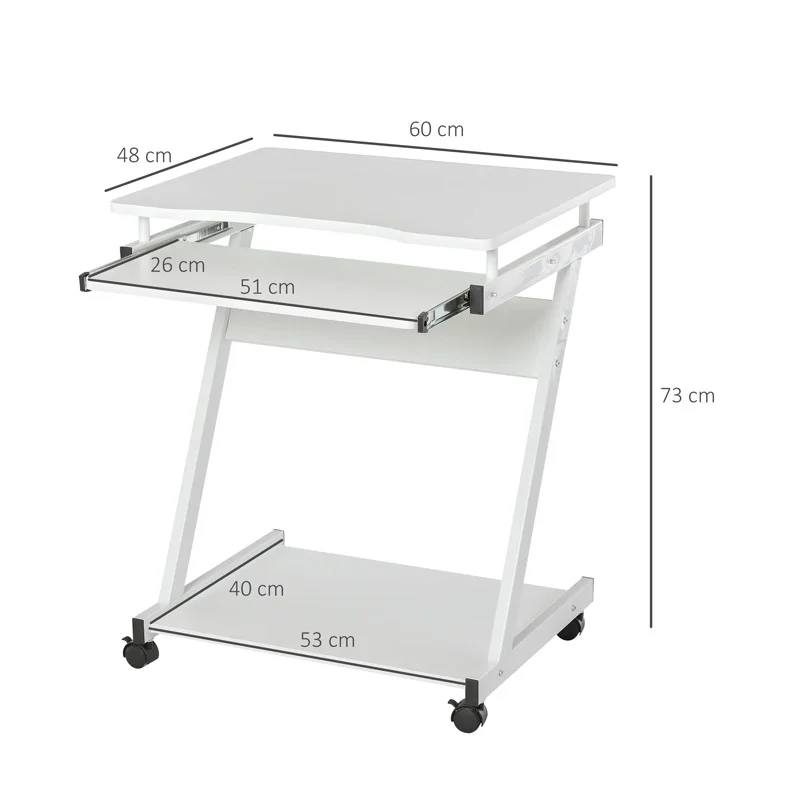 Τροχήλατο Μεταλλικό Γραφείο Υπολογιστή με Θέση για Πληκτρολόγιο 60 x 48 x 73 cm Χρώματος Λευκό HOMCOM 836-293WT