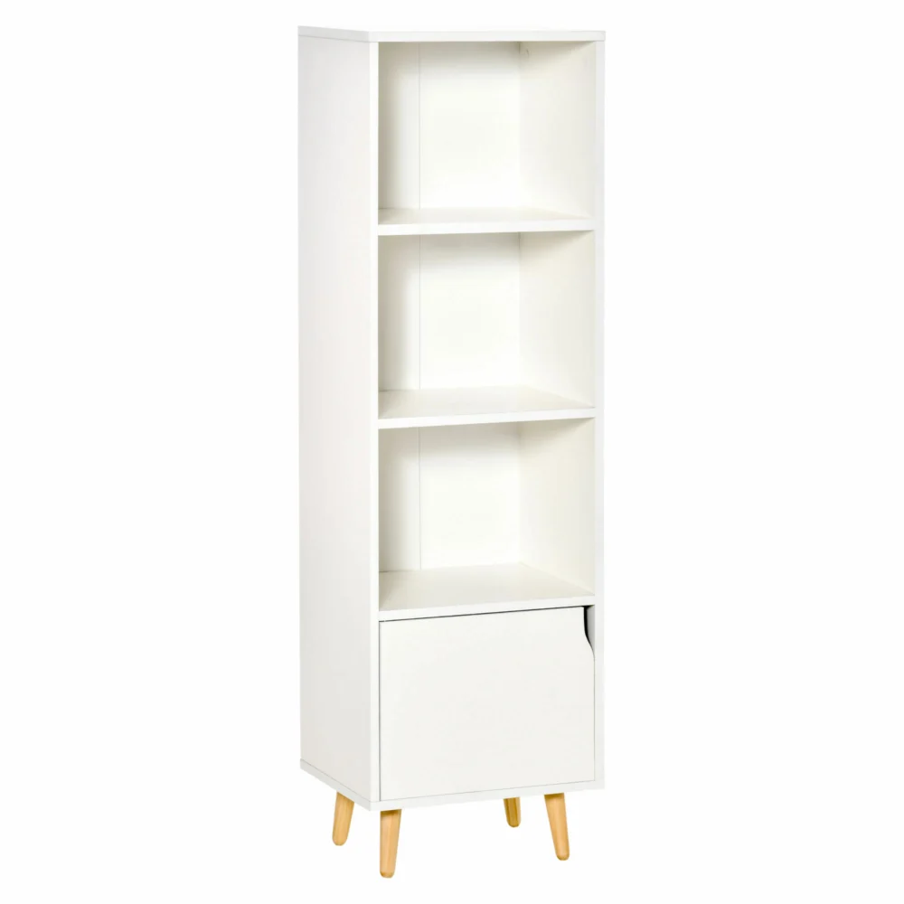 HOMCOM Βιβλιοθήκη Ράφι με 3 Ράφια και 1 Ξύλινο Ντουλάπι, 40x30x129,5cm – Λευκό 836-485WT
