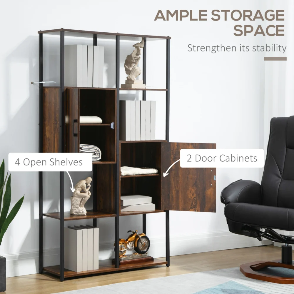 Βιβλιοθήκη HOMCOM Industrial Style με 4 ράφια και 2 ντουλάπια, 90x30x159,5cm, Μαύρο και Καφέ 836-522