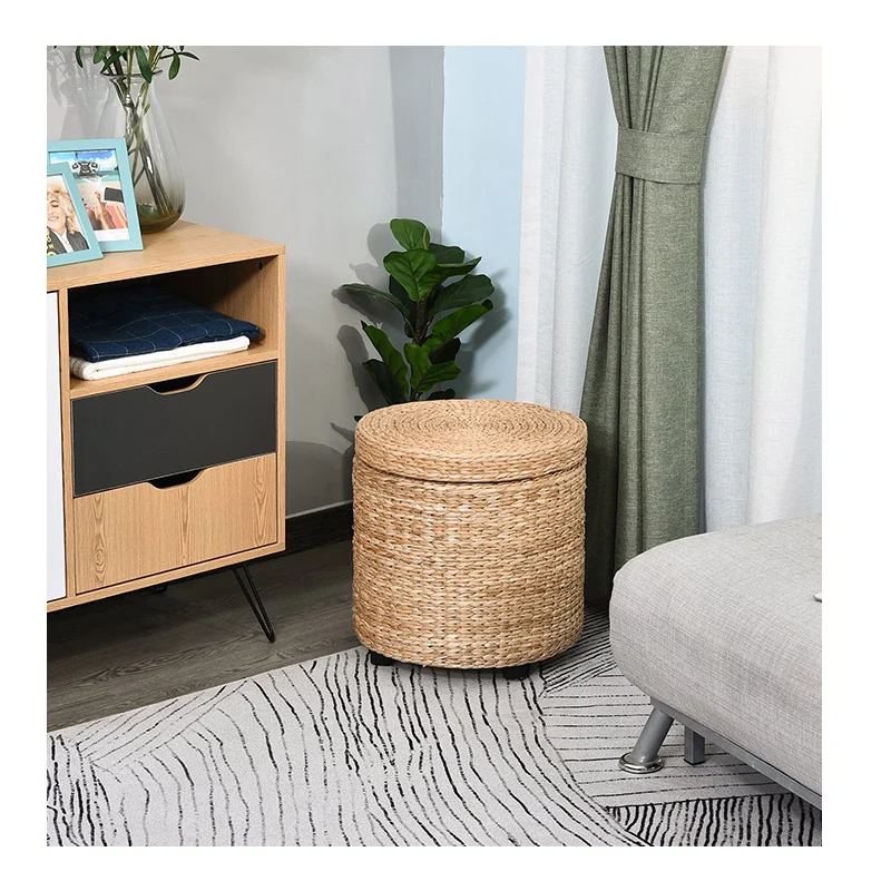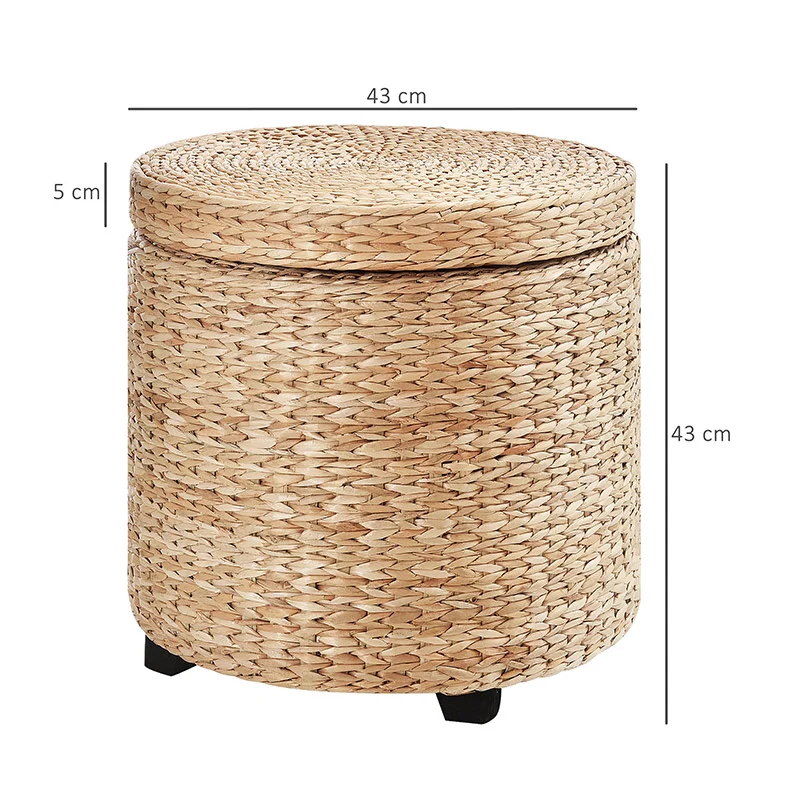 Στρογγυλό Ψάθινο Σκαμπό με Αποθηκευτικό Χώρο 43 x 43 cm HOMCOM 837-072