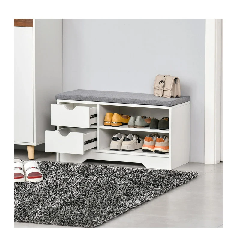 Η παπουτσοθήκη είναι κατασκευασμένη από ξύλο μοριοσανίδας, άριστης ποιότητας και μεγάλης ανθεκτικότητας. Διαθέτει 2 ξύλινα ράφια, ιδανικά για την αποθήκευση παπούτσιων ή άλλων μικρών αντικείμενων που θέλετε να παραμένουν τακτοποιημένα. Επιπλέον η παπουτσοθήκη διαθέτει και 2 ευρύχωρα συρτάρια για έξτρα αποθηκευτικό χώρο, που μπορεί να χρησιμοποιηθεί για μικροαντικείμενα, ρούχα, αξεσουάρ κ.α