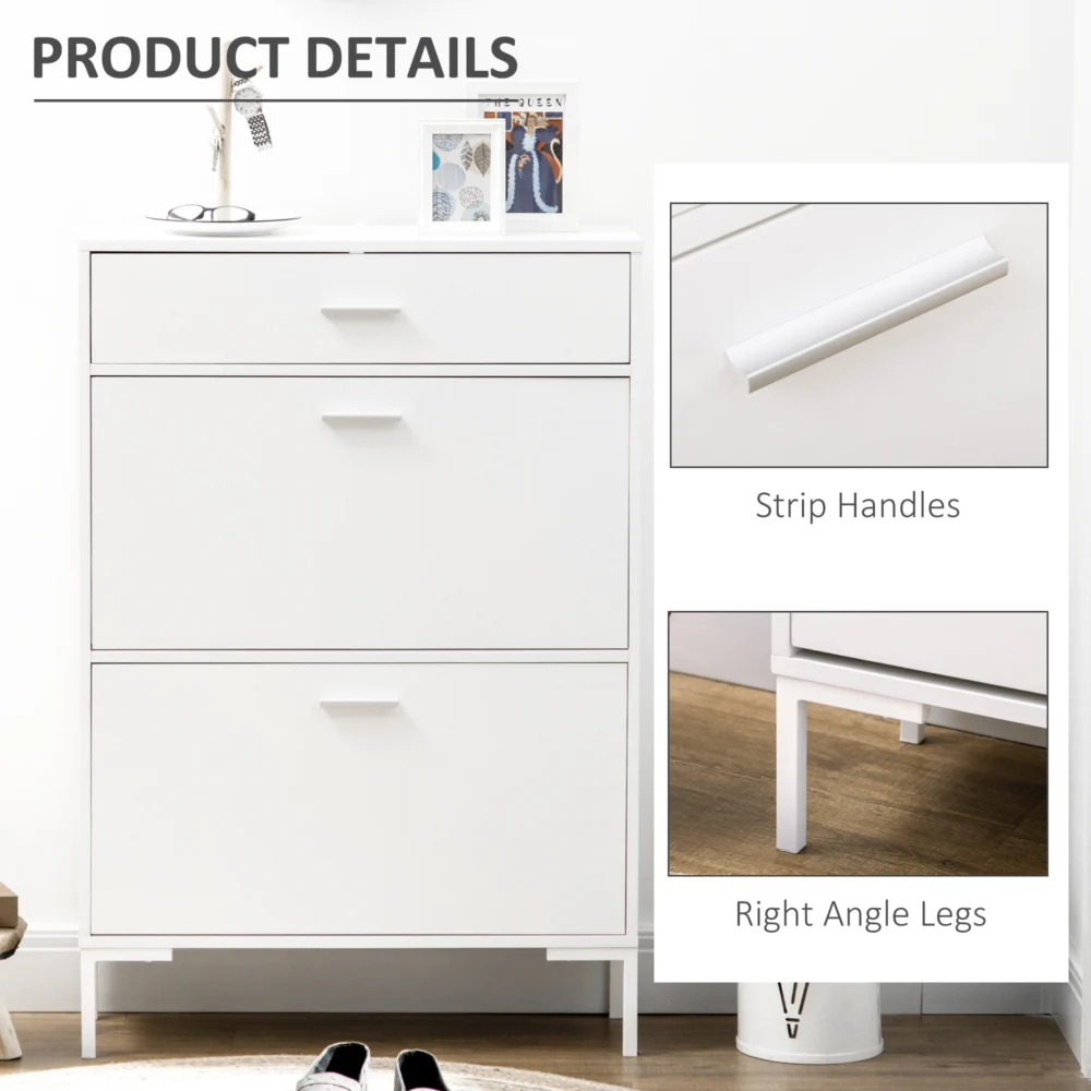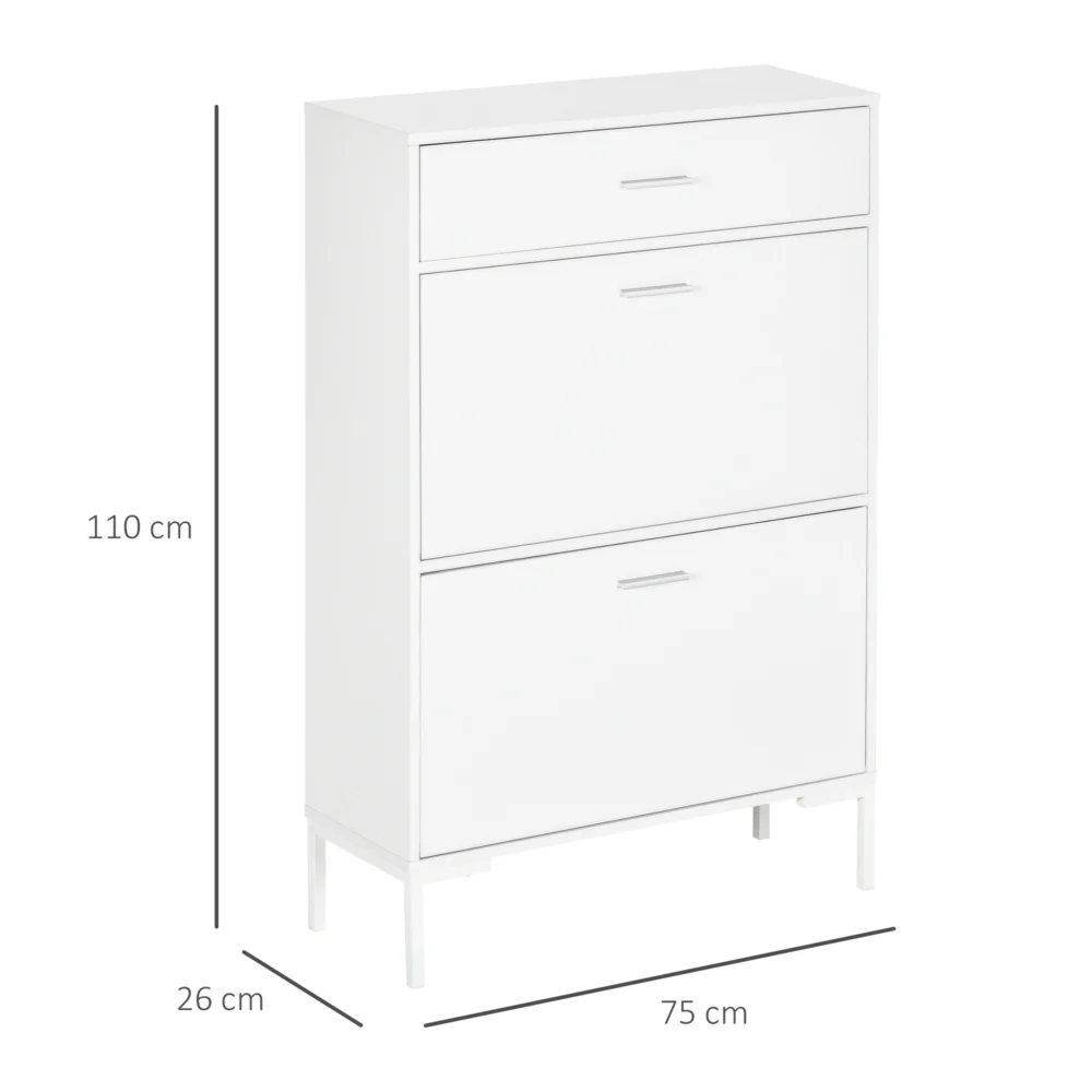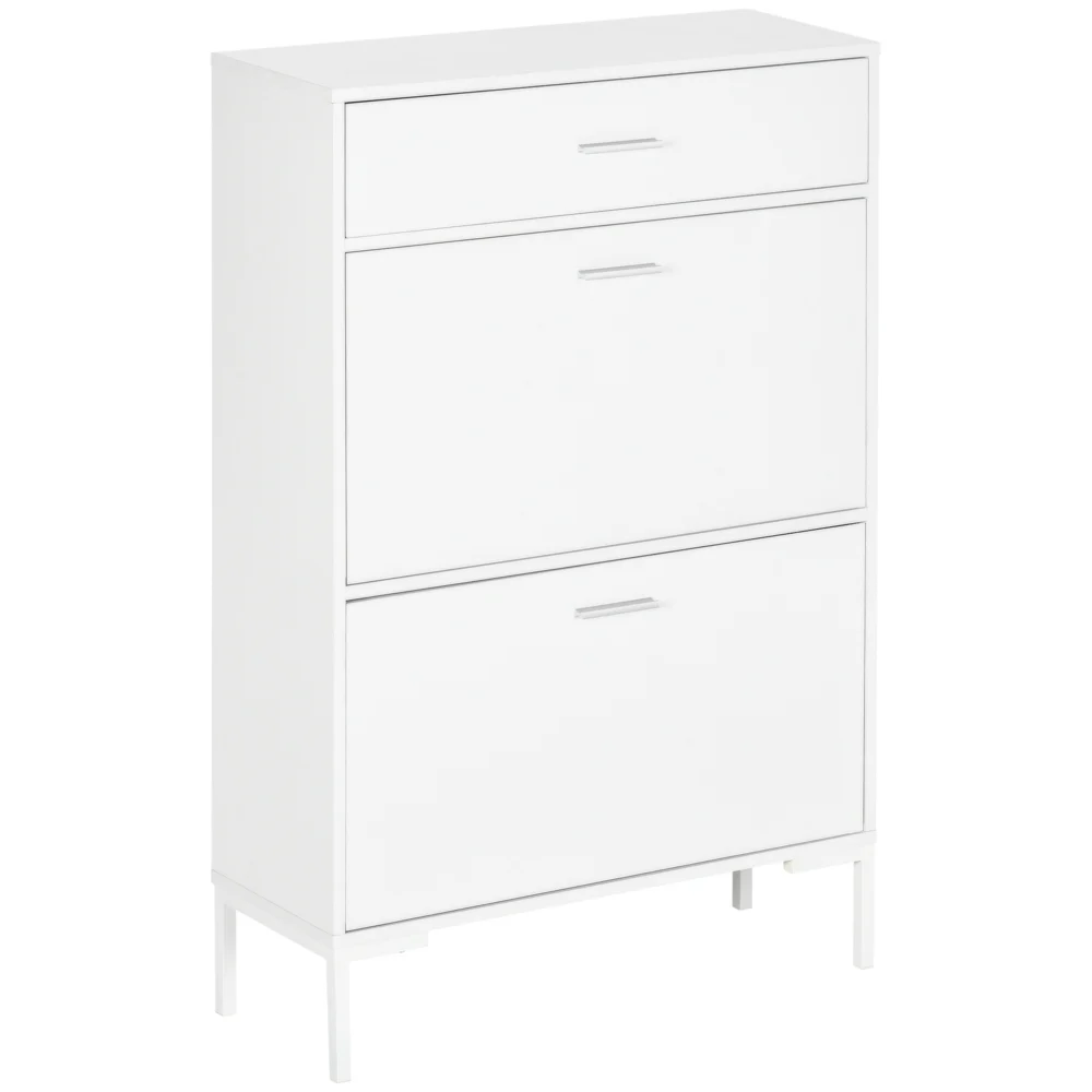 HOMCOM Μοντέρνα ντουλάπα παπουτσιών για 12 ζευγάρια παπούτσια με 2 πορτάκια και συρτάρι, 76x26x110 cm, λευκό 837-233WT