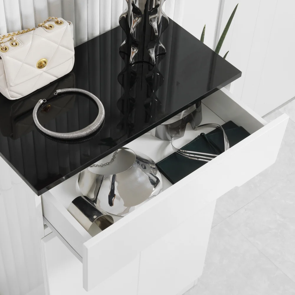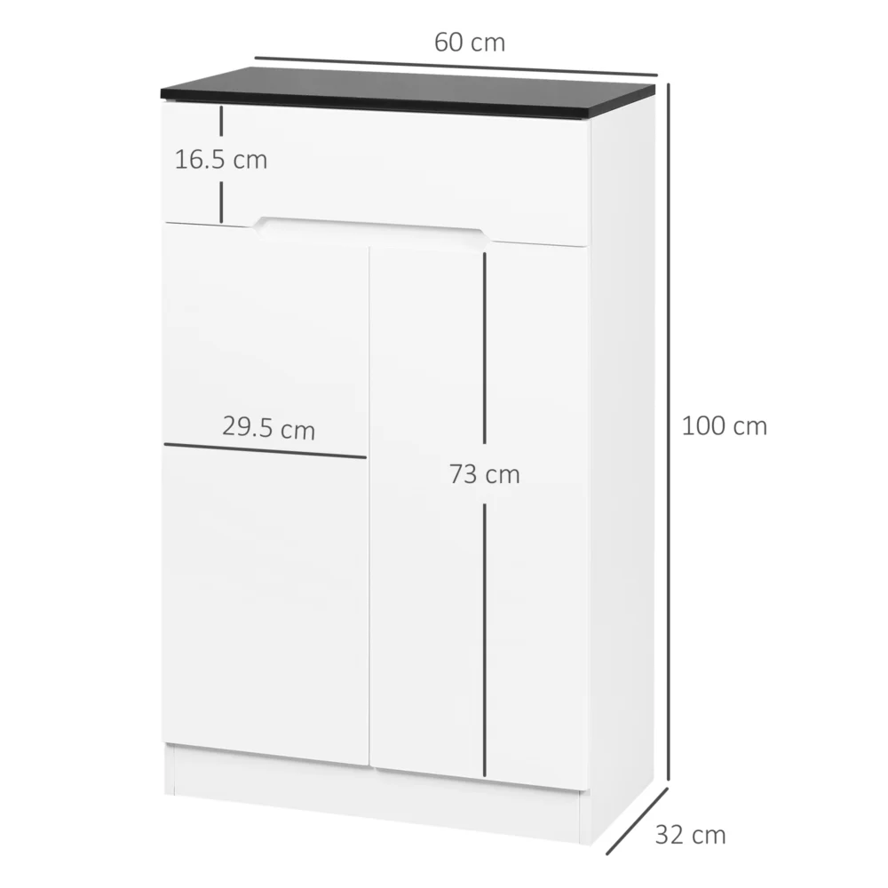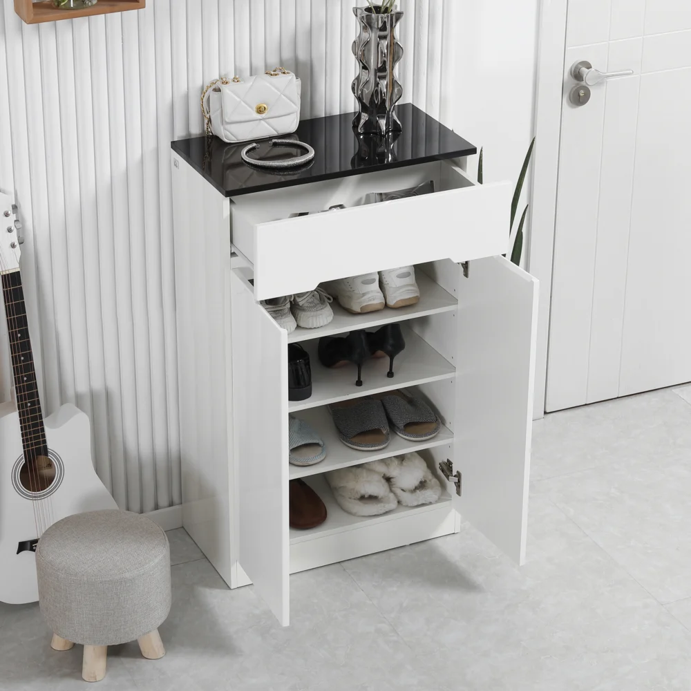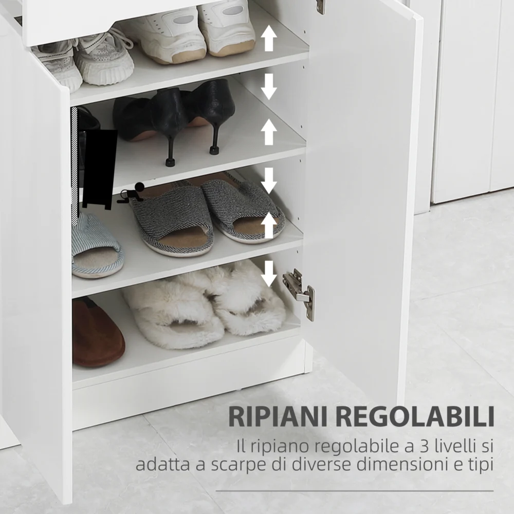 HOMCOM Λεπτή σχάρα παπουτσιών 12 ζευγαριών max για διαδρόμους με 3 ρυθμιζόμενα ράφια και συρτάρι, σε λευκό μοριοσανίδα, 60x32x100 cm 837-288V00WT