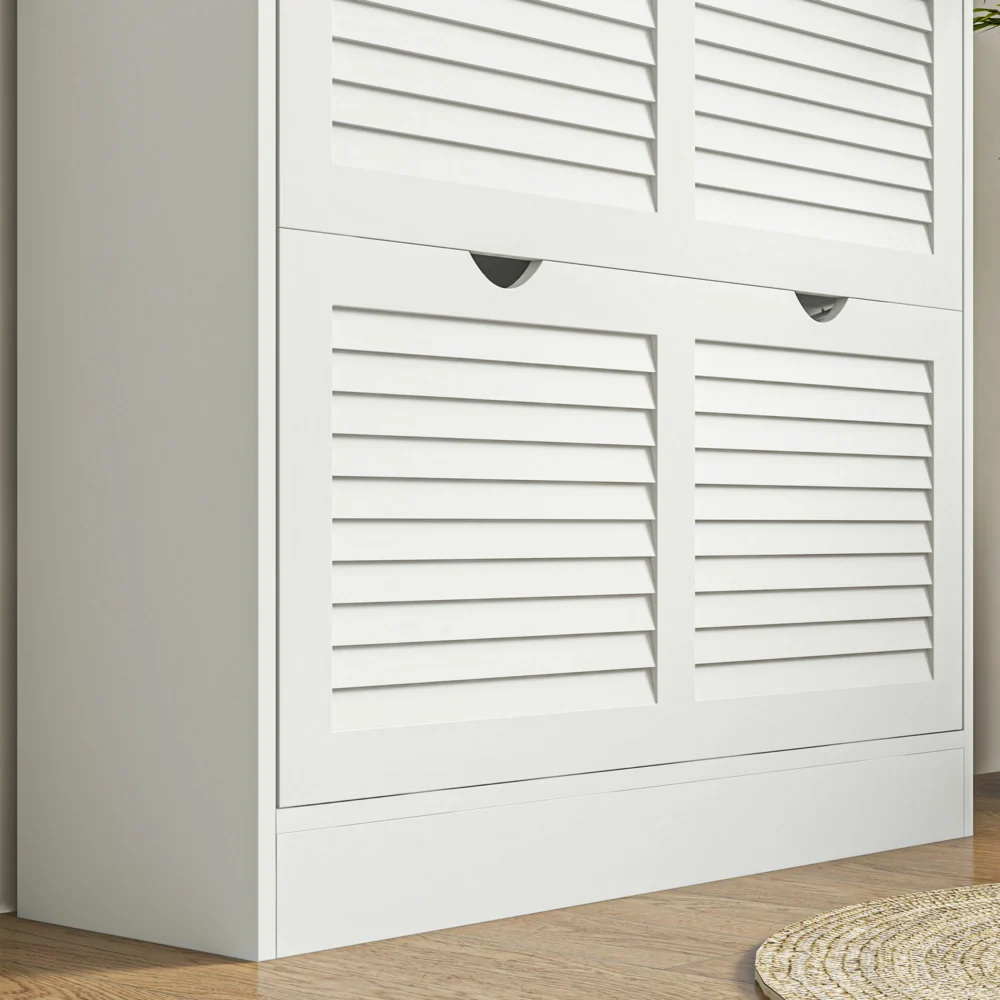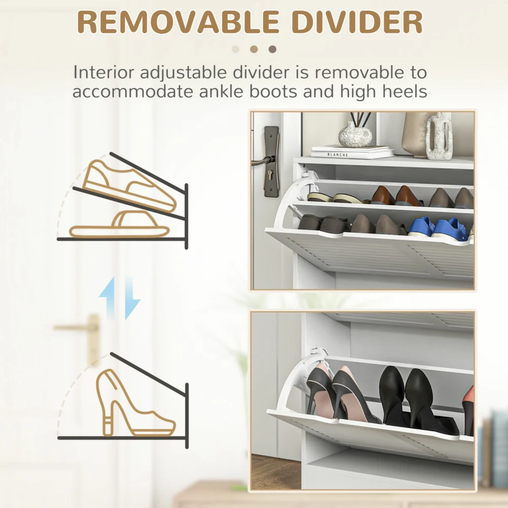 Ξύλινη σχάρα παπουτσιών HOMCOM Mobile για εξοικονόμηση χώρου για 16 ζευγάρια παπούτσια με 2 πορτάκια, 81,5x25x83 cm, λευκό 837-415V00WT