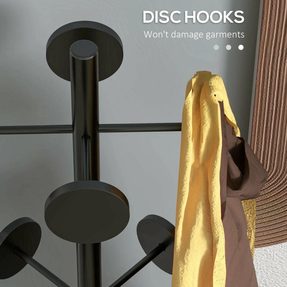 Κρεμάστρα δαπέδου HOMCOM με ομπρέλα και 8 μεταλλικούς γάντζους δίσκου Ø34 x 177cm, Μαύρο 837-420V00BK