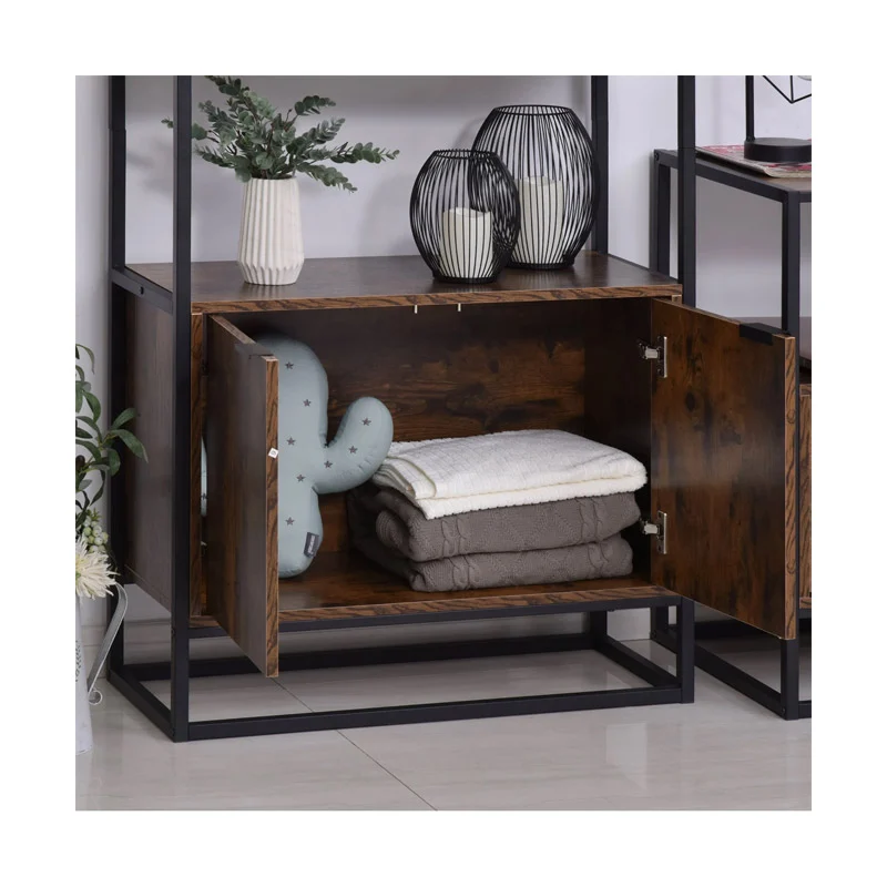 Η βιβλιοθήκη, από την εταιρία HOMCOM, έχει βιομηχανικό σχεδιασμό και διαθέτει στιβαρό μεταλλικό πλαίσιο, 3 ράφια και 1 ντουλάπι από υψηλής αντοχής μοριοσανίδα σε καφέ ρουστίκ χρώμα, για μακροχρόνια χρήση. Διαθέτει ανυψωμένη βάση για να κρατήσει τα αντικείμενα σας μακριά από την υγρασία του εδάφους.