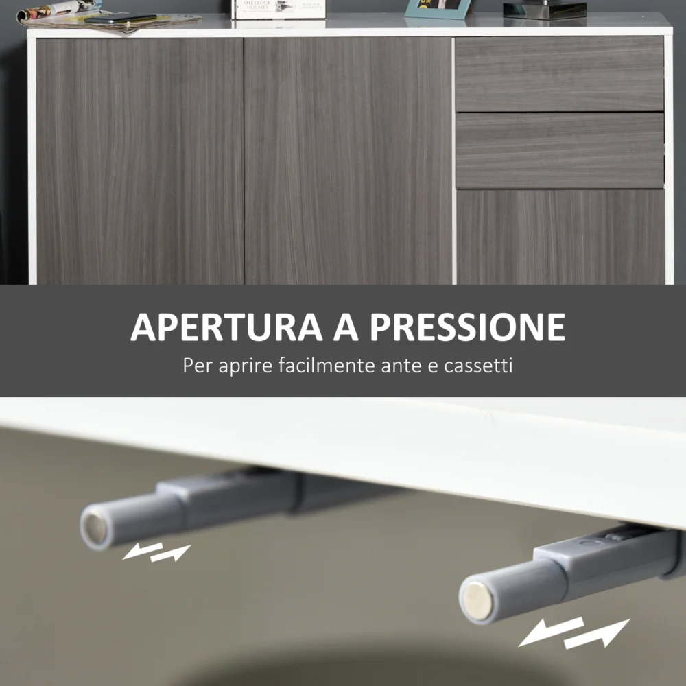 HOMCOM Ξύλινο ντουλάπι πολλαπλών χρήσεων για σαλόνι, κουζίνα, γραφείο με άνοιγμα ώθησης, 117x36x74cm – Λευκό / Σκούρο Γκρι 838-077GY