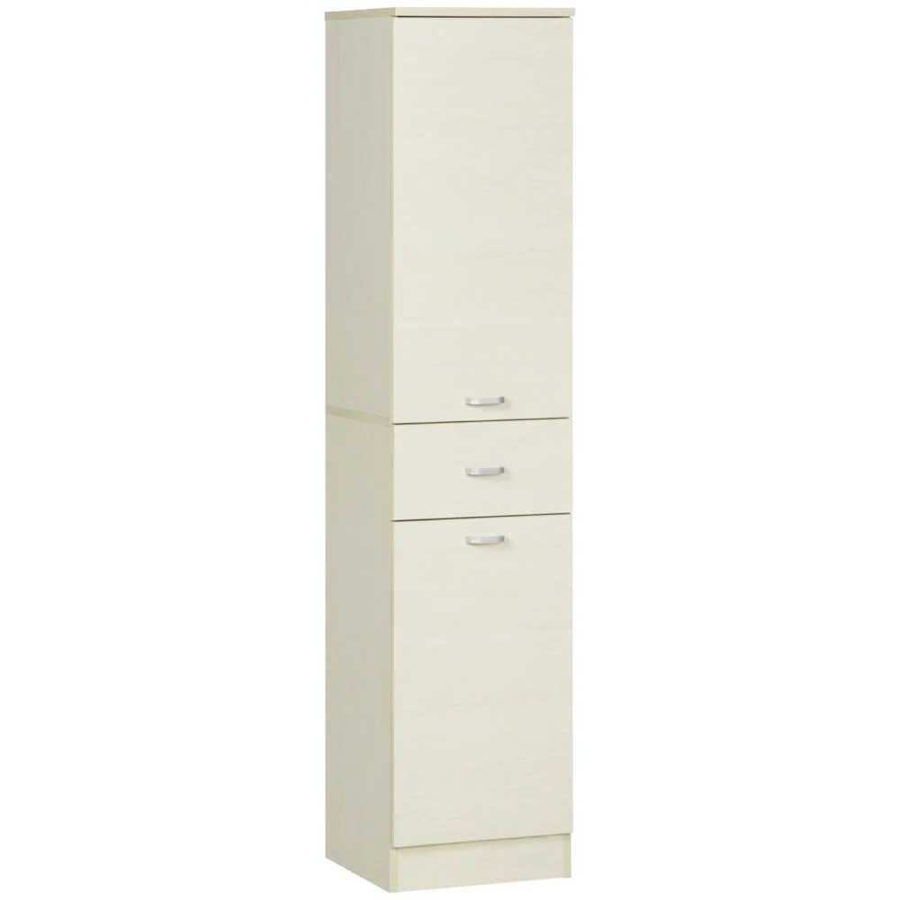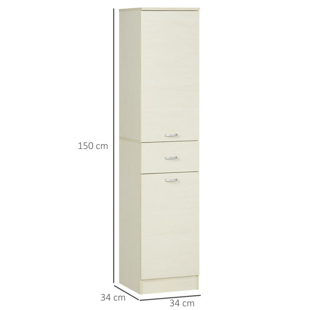 HOMCOM Ξύλινο Ντουλάπι Μπάνιου με Συρτάρι, 2 Ντουλάπες και Ρυθμιζόμενα Ράφια, 34x34x150 cm, Χρώμα Ξύλου 838-207