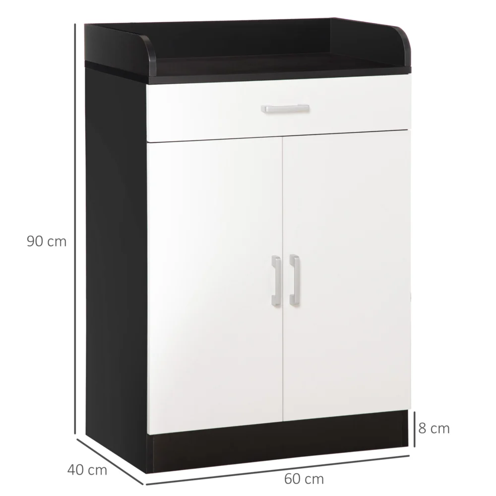 HOMCOM Ντουλάπι με Συρτάρι και Ρυθμιζόμενο Ράφι για Κουζίνα, Σαλόνι και Διάδρομο, MDF, 60x40x90cm, Λευκό και Μαύρο 838-219