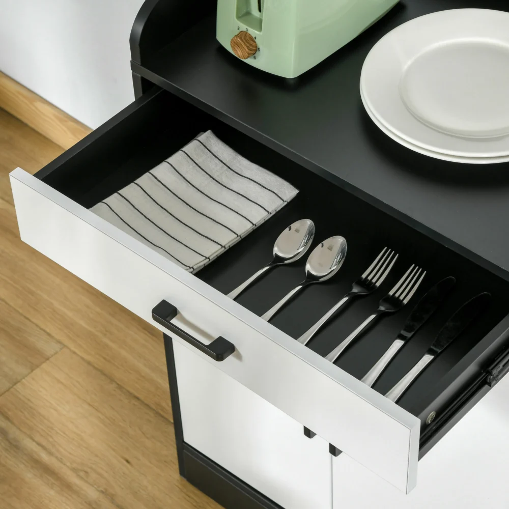 HOMCOM Μοντέρνο Έπιπλο Κουζίνας MDF με 2 Ντουλάπες, 1 Συρτάρι και Ρυθμιζόμενα Ράφια, 90x40x90 cm, Ασπρόμαυρο 838-221