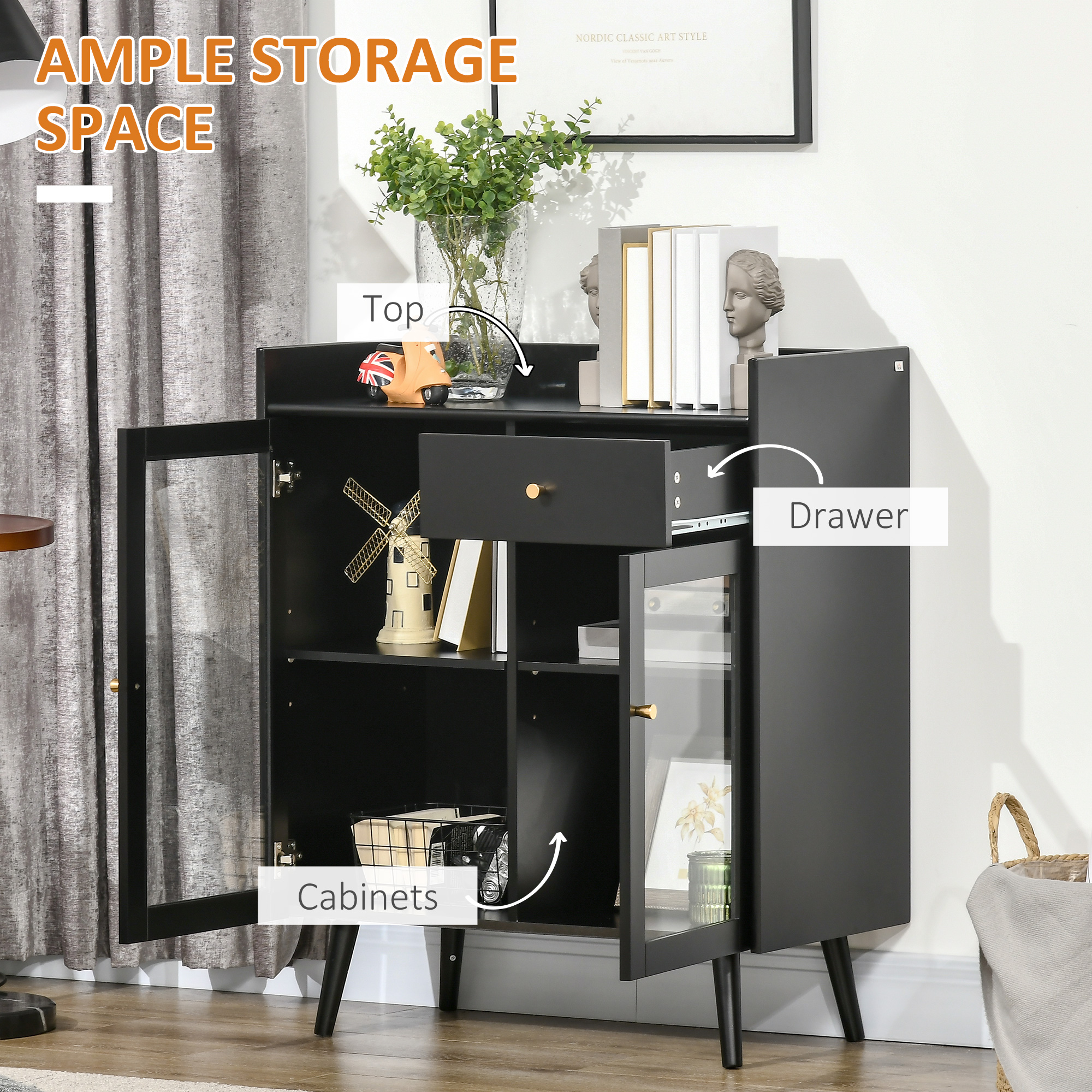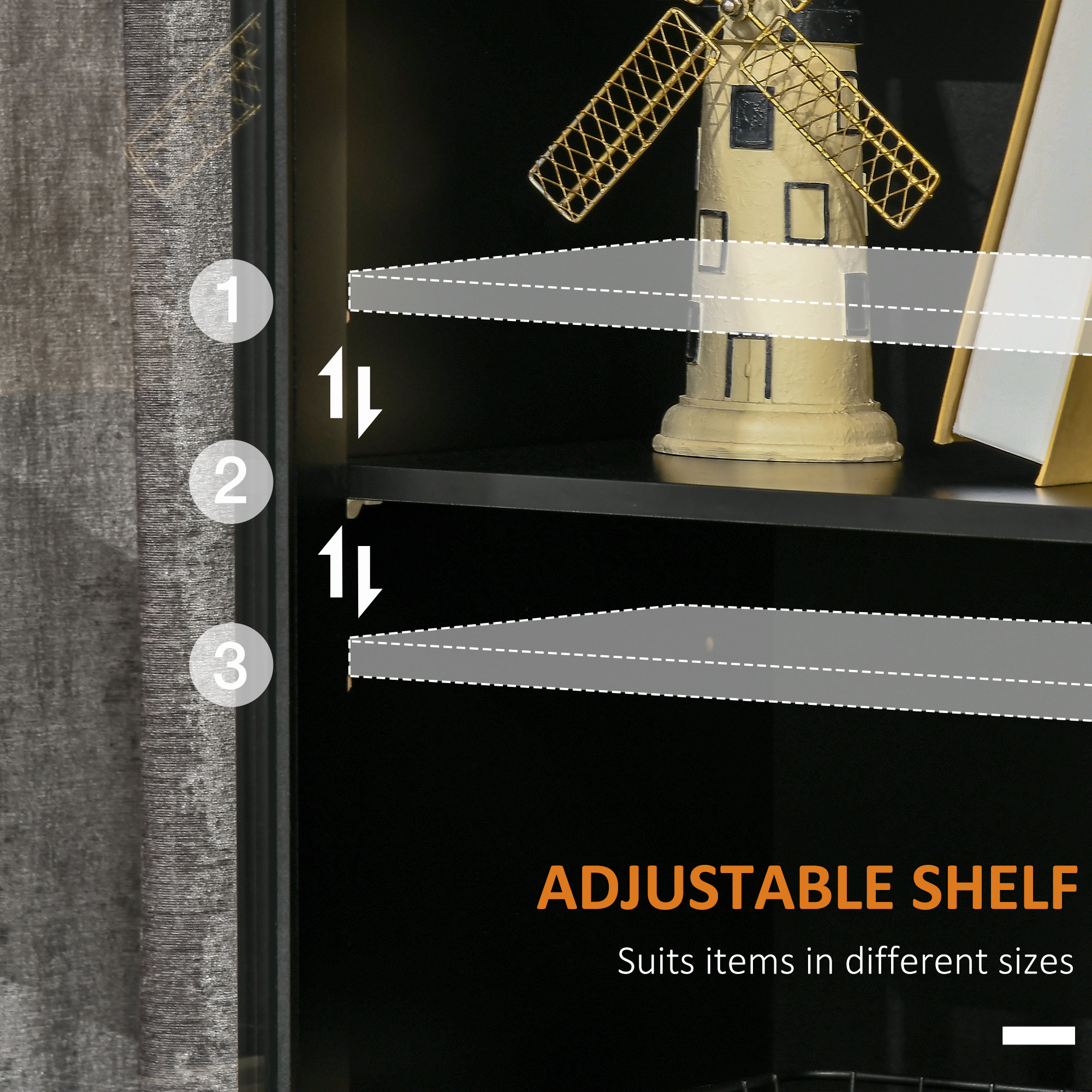 HOMCOM Ντουλάπι Δύο Πόρτες με Ρυθμιζόμενο Ράφι και Ανοιχτούς Χώρους σε MDF και Ξύλο, 80x40x94,3 cm, Μαύρο 838-263V00BK