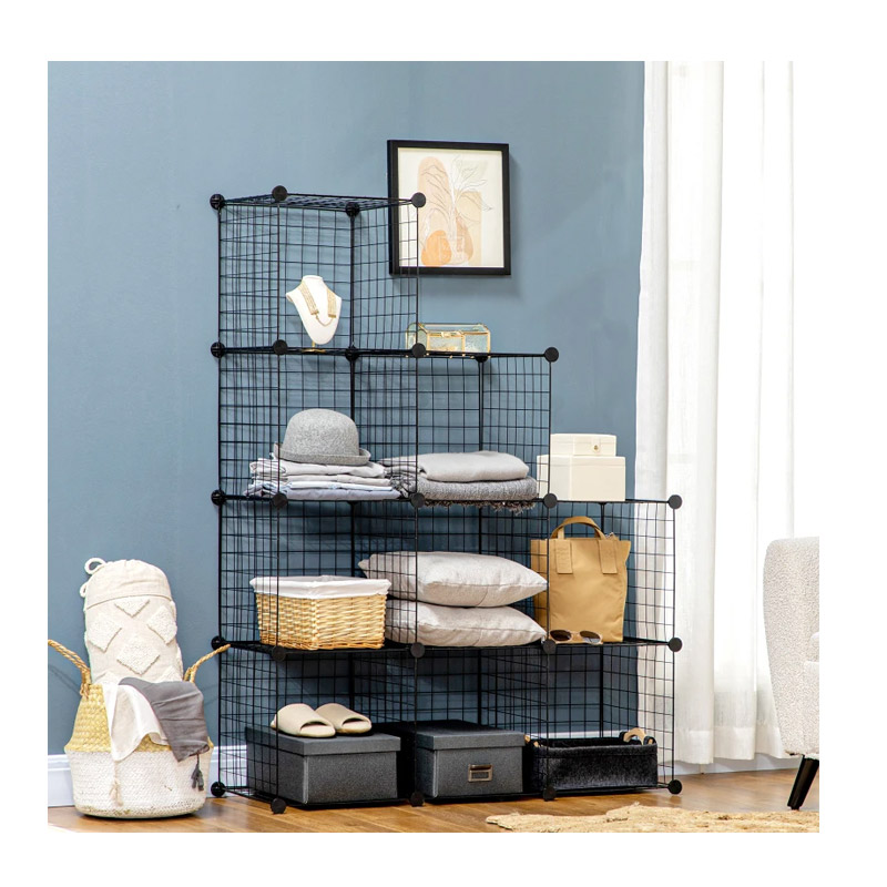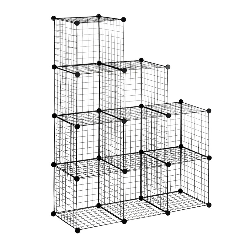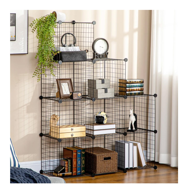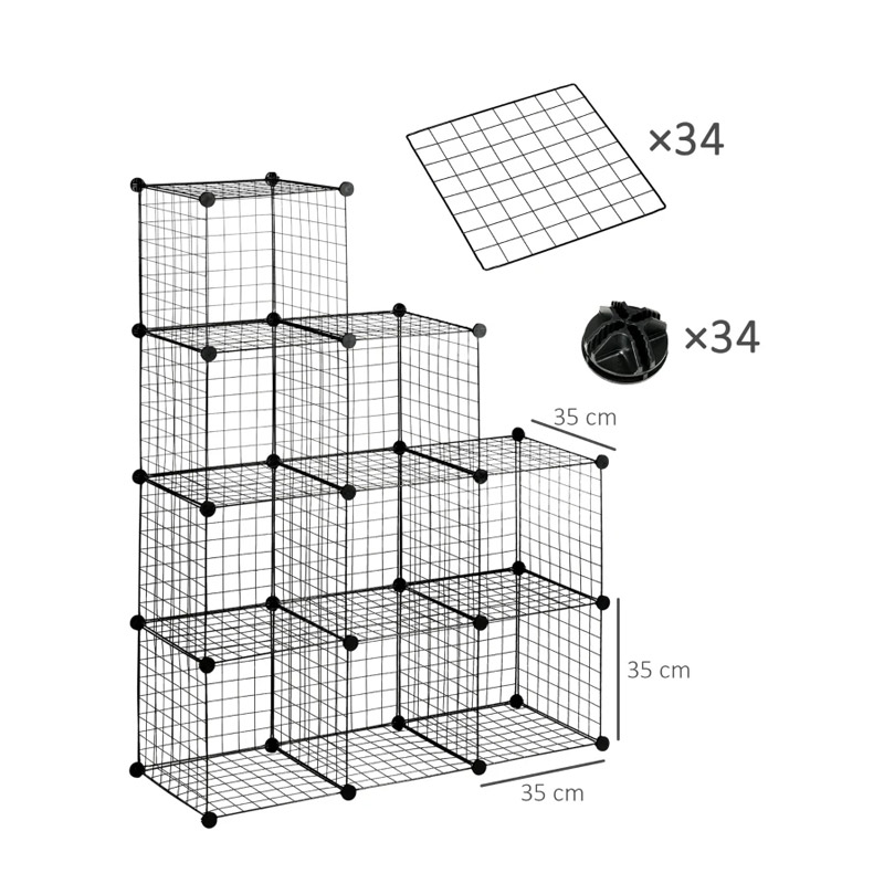 Η πολυμορφική βιβλιοθήκη, από την εταιρία HOMCOM, μπορεί να ρυθμιστεί σε διάφορα σχήματα και μεγέθη. Εννέα μεγάλοι κύβοι με ανοιχτό πλέγμα, σας επιτρέπουν να τοποθετείτε βιβλία, ρούχα, παπούτσια, τσάντες, φυτά, παιδικά παιχνίδια και πολλά άλλα, παρέχοντάς σας άφθονο χώρο για κάθε αντικείμενο που χρειάζεται αποθήκευση. Οι κύβοι είναι κατασκευασμένοι από ατσάλινο σύρμα για να σας δίνουν μια στιβαρή κατασκευή.