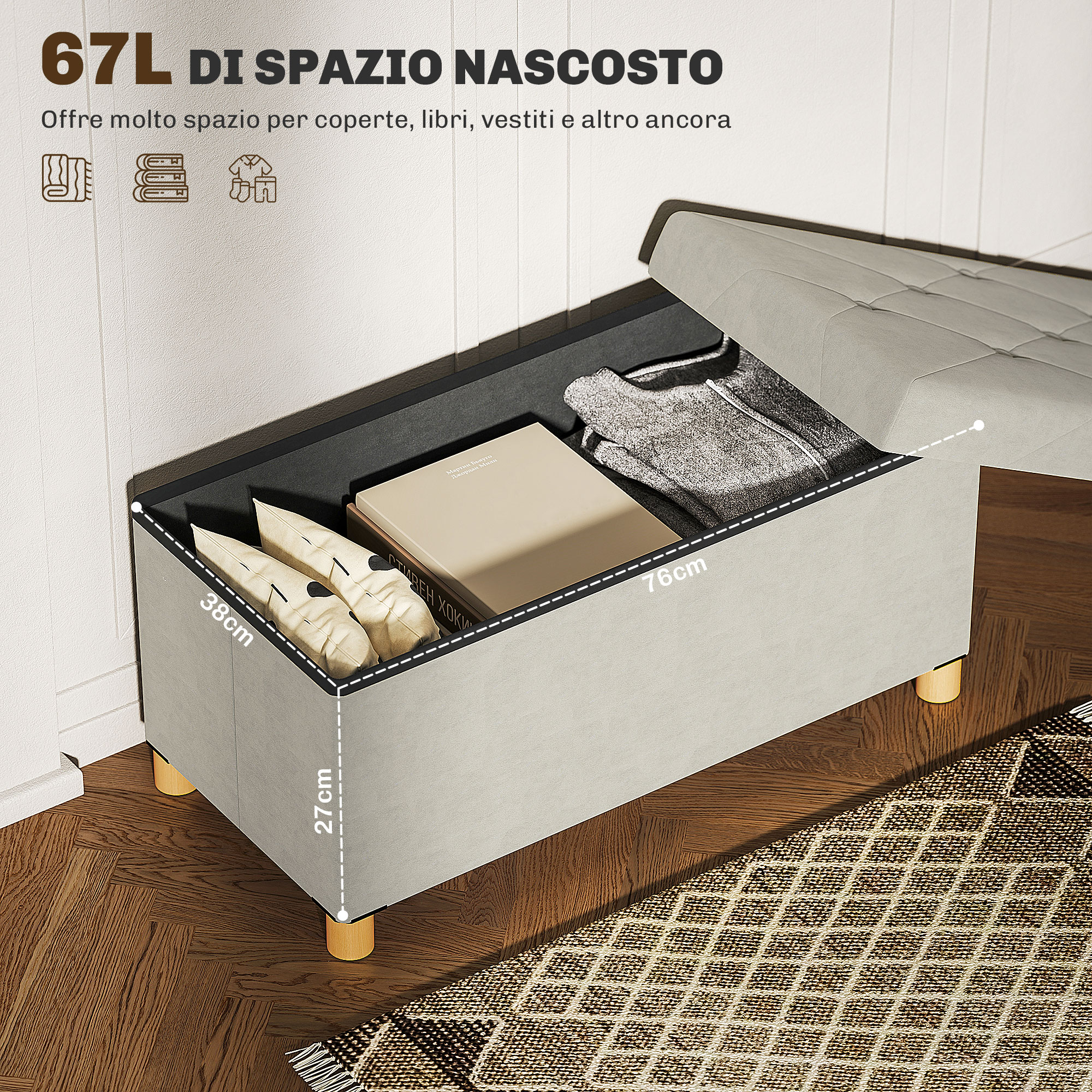HOMCOM Πτυσσόμενο Κουτί Αποθήκευσης 67L με Καπάκι με Επένδυση και Βελούδινη Επικάλυψη, 76x38x38cm, Κρέμα 838-471V00CW