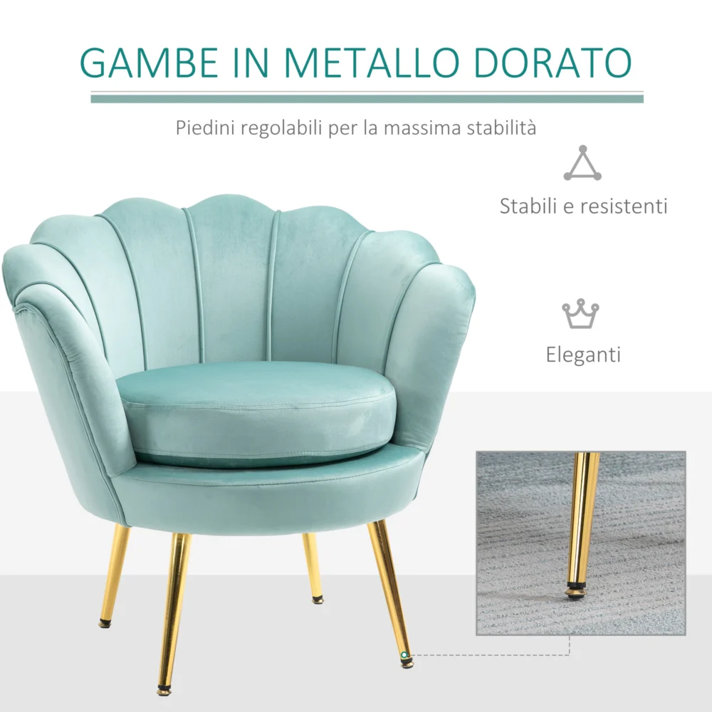 Πολυθρόνα HOMCOM Vintage Velvet Effect με ψηλή πλάτη, 76x67x74cm, γαλάζιο 839-012
