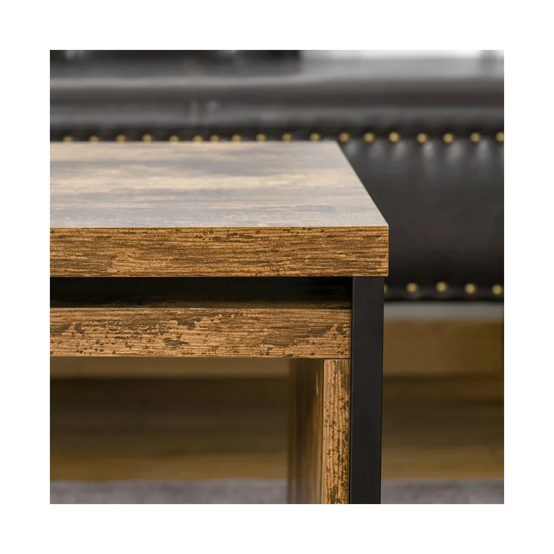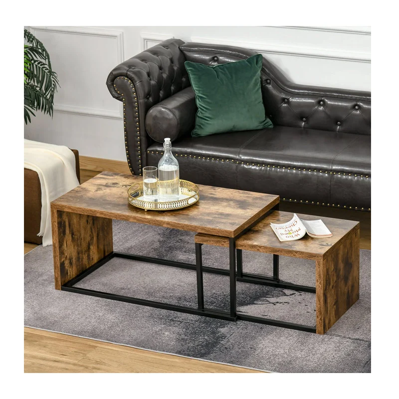 Το σετ, από την εταιρία HOMCOM, αποτελείται από 1 τραπέζι σαλονιού και 1 βοηθητικό τραπέζι, ιδανικά για τη διακόσμηση του σαλονιού σας. Διαθέτουν βιομηχανικό σχεδιασμό με σιδερένιο σκελετό, επιφάνεια από MDF ξύλο και σταθερή βάση για απόλυτη ασφάλεια κατά τη χρήση. Το βοηθητικό τραπεζάκι μπορεί να τοποθετηθεί κάτω από το μεγάλο τραπέζι, για εξοικονόμηση χώρου.