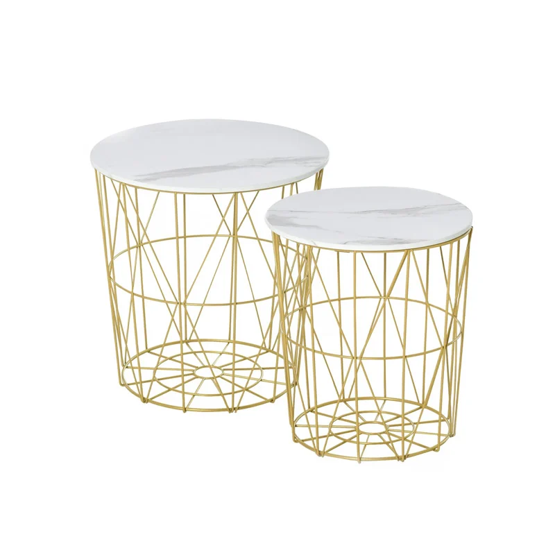 Το σετ, από την εταιρία HOMCOM, αποτελείται από 2 βοηθητικά στρόγγυλα τραπεζάκια διαφορετικών διαστάσεων, με μίνιμαλ σχεδιασμό, κατάλληλα για τη διακόσμηση του σαλονιού σας. Τα τραπεζάκια είναι κατασκευασμένα από μέταλλο και διαθέτουν ανοιγόμενη επιφάνεια από ξύλο MDF, με επίστρωση μελαμίνης σε όψη μαρμάρου, για να μπορείτε να αποθηκεύετε στο εσωτερικό τους περιοδικά και άλλα προσωπικά σας αντικείμενα. Επιπρόσθετα, το μικρό τραπέζι μπορεί να τοποθετηθεί μέσα στο μεγαλύτερο για εξοικονόμηση χώρου.