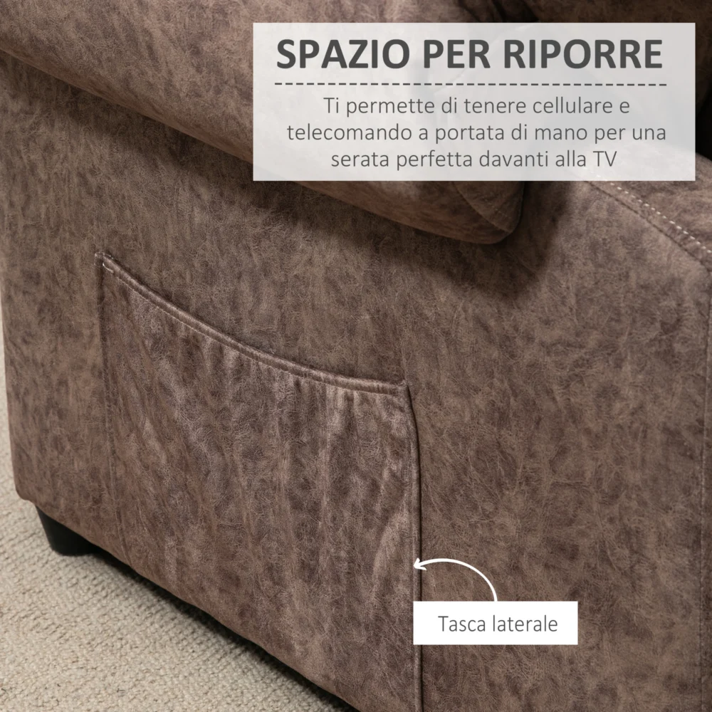 HOMCOM Χειροκίνητη ανακλινόμενη πολυθρόνα χαλάρωσης από ύφασμα με έξτρα επένδυση, καφέ 839-339BN