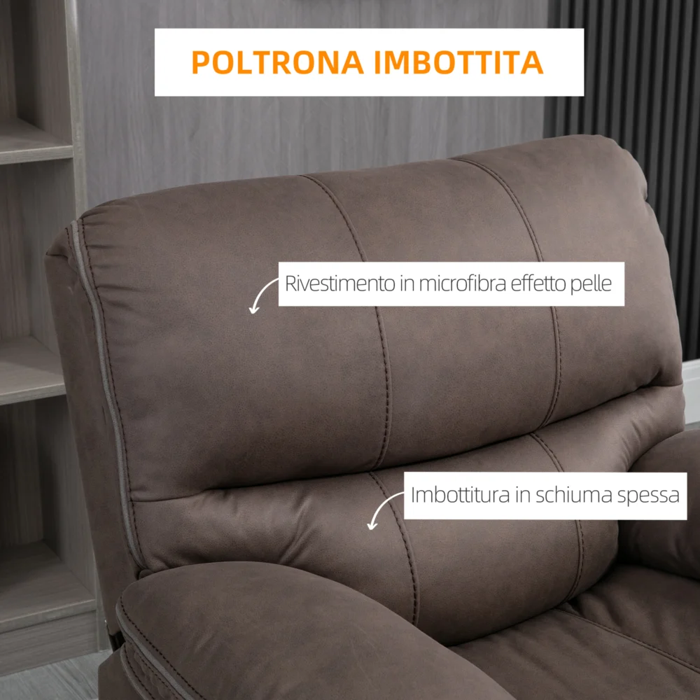 Πολυθρόνα HOMCOM Relax με χειροκίνητη ανάκλιση και υποπόδιο, 97x99x96cm, καφέ 839-501V00BN