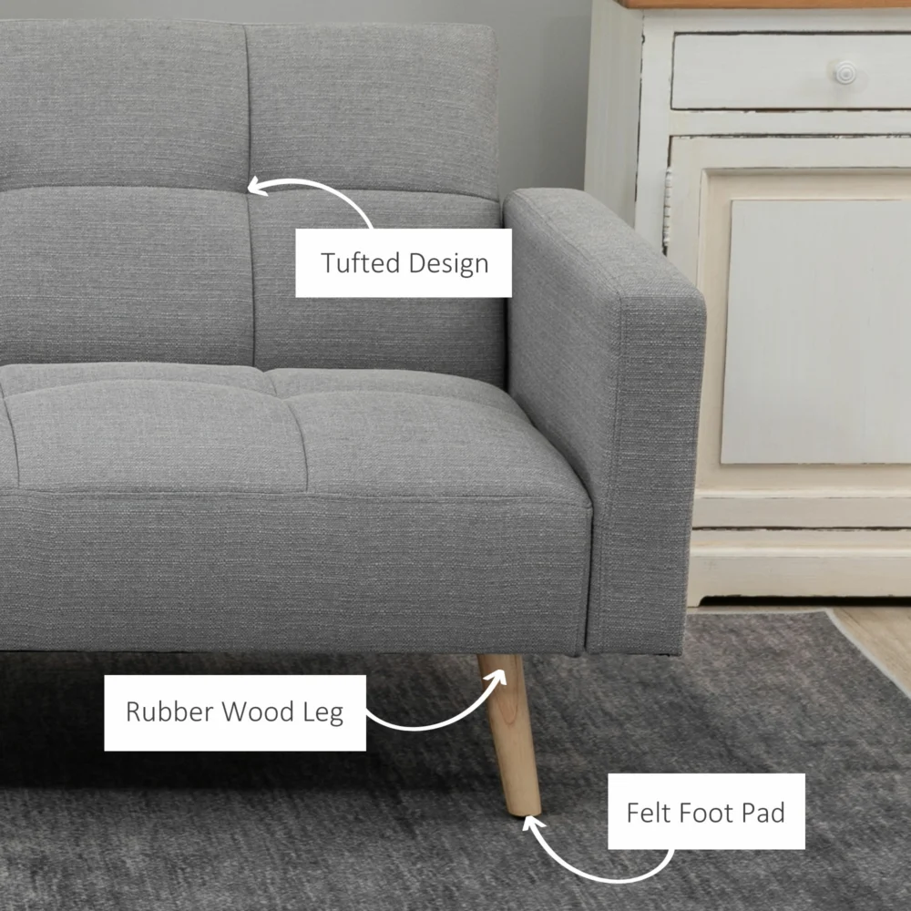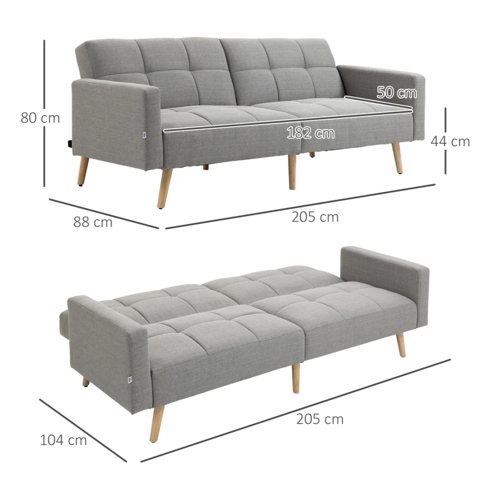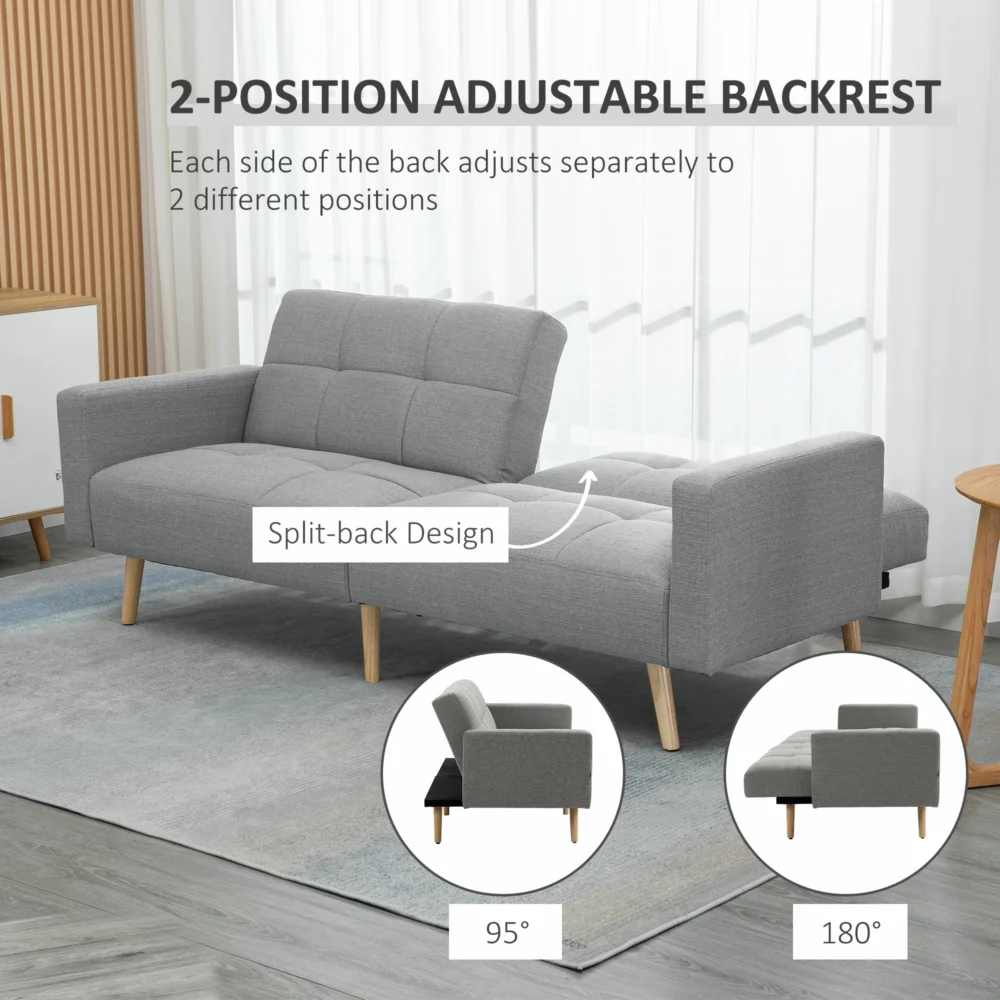 HOMCOM Διπλός καναπές-κρεβάτι με αναπνέον ύφασμα λινό εφέ και ρυθμιζόμενη πλάτη, 205x95x80 cm, γκρι 839-502V01GY