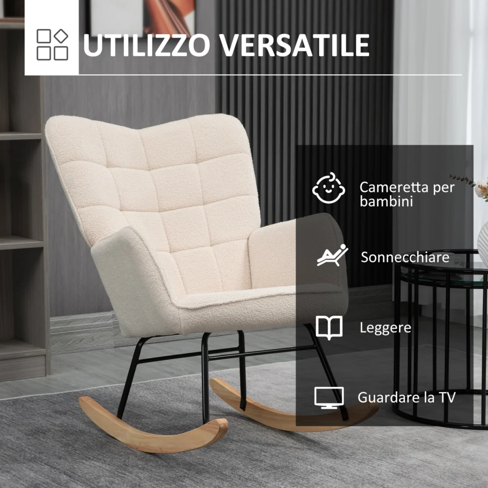 Κουνιστή πολυθρόνα HOMCOM με επένδυση από ξύλο και ατσάλι για σαλόνι και υπνοδωμάτιο, 71x92x101 cm, μπεζ 839-613V00BG