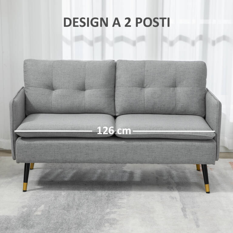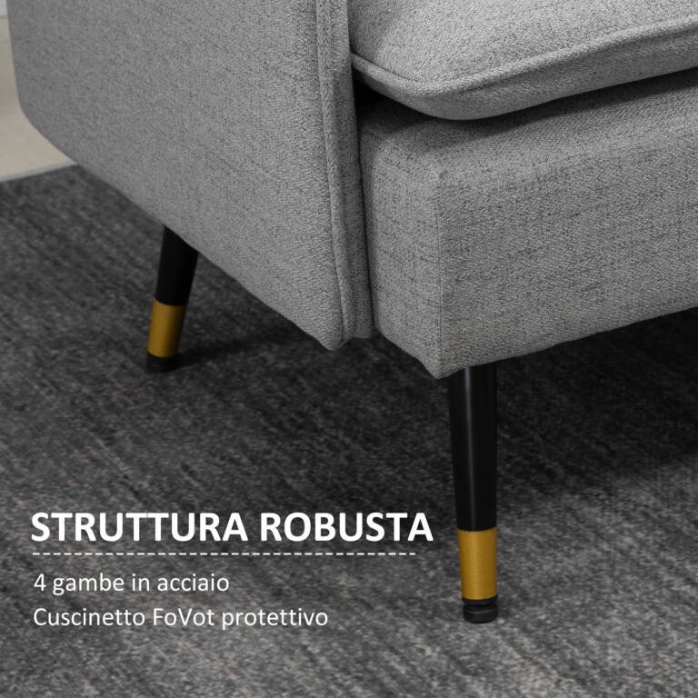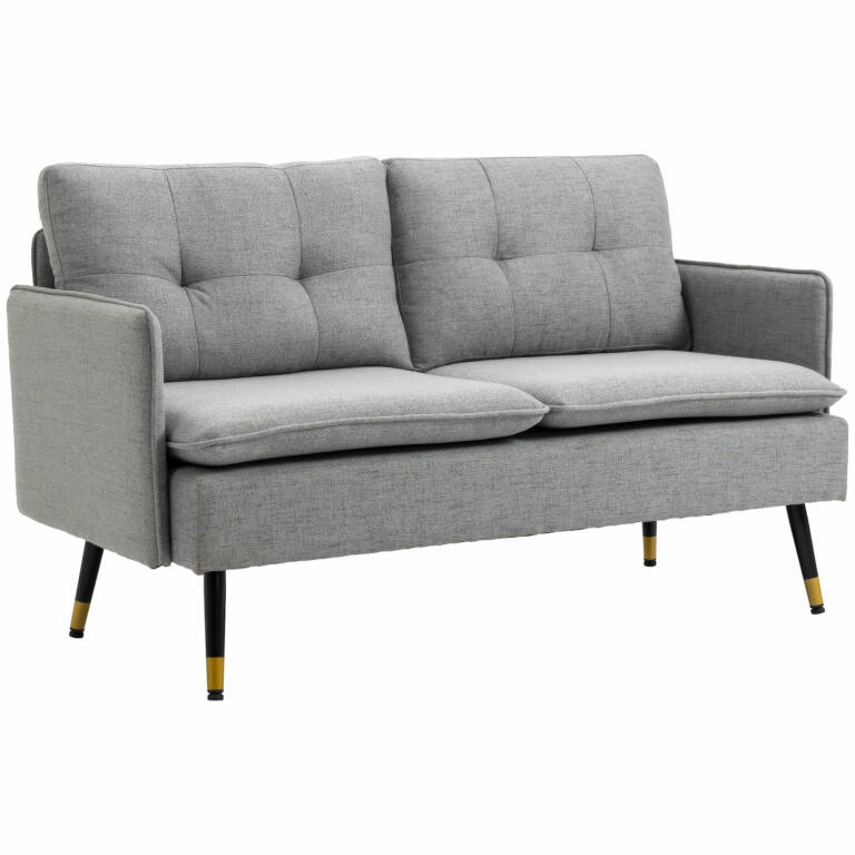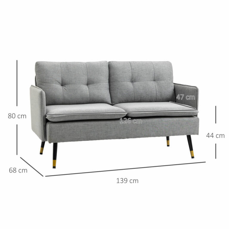 HOMCOM 2θέσιος καναπές από ύφασμα με μαξιλάρια με επένδυση και ατσάλινα πόδια 139x68x80cm, γκρι 839-622V00GY