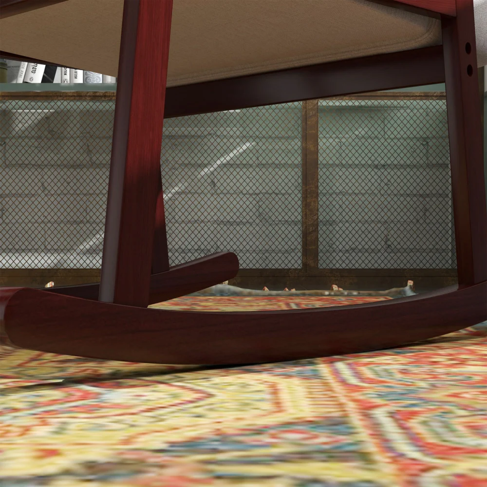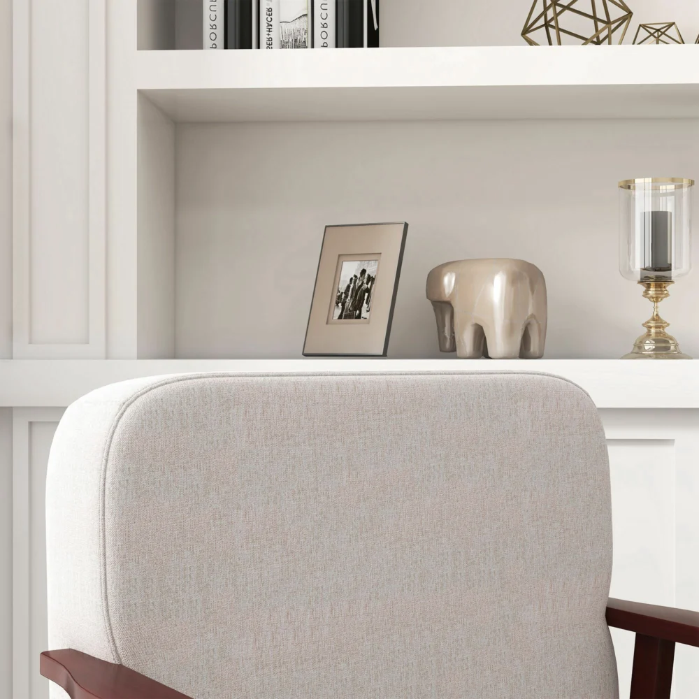 Κουνιστή πολυθρόνα HOMCOM από ύφασμα λινό και εφέ ξύλου με μπράτσα και μαξιλάρια, 66x78x76 cm, μπεζ και καφέ 839-783V00BG