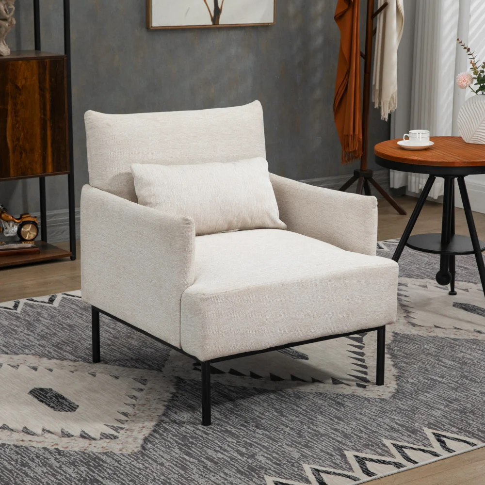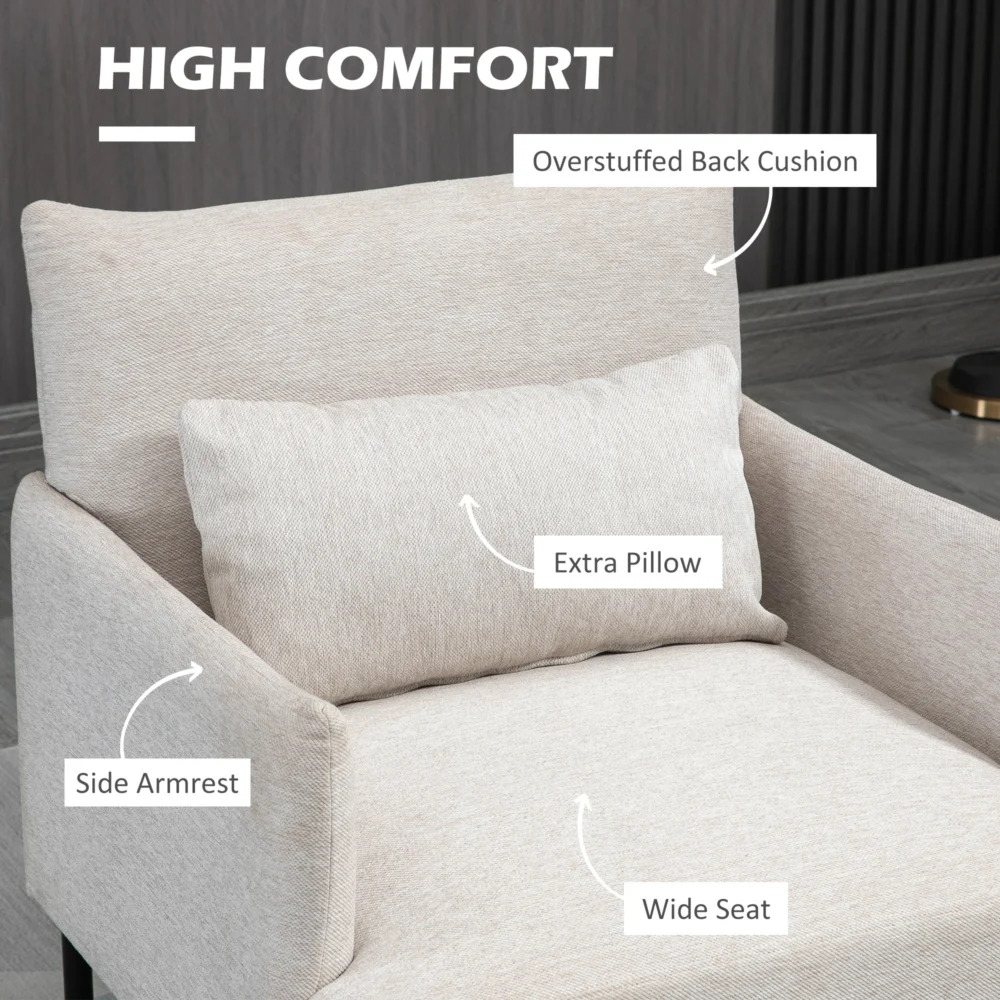 Πολυθρόνα HOMCOM Μοντέρνα Επίπλωση με Έξτρα Μαξιλάρι, σε ύφασμα λινό και ατσάλινο εφέ, 73x81x82 cm, Κρεμ Λευκό 839-827V00CW