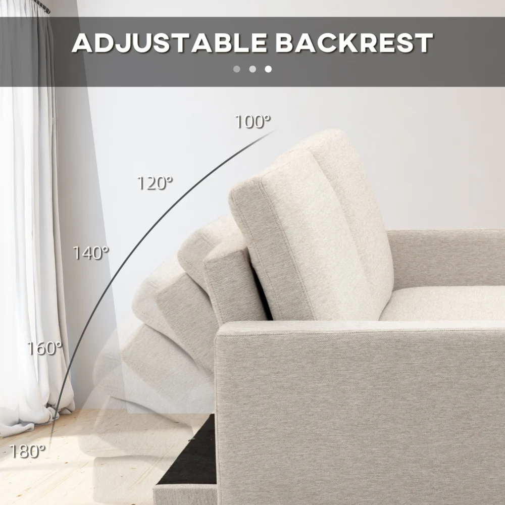 HOMCOM 3θέσιος καναπές-κρεβάτι υφασμάτινο με στήριγμα ποδιών και πλάτη με 5 θέσεις ανάκλισης, 213x91x83cm, Κρέμα 839-831V80CW