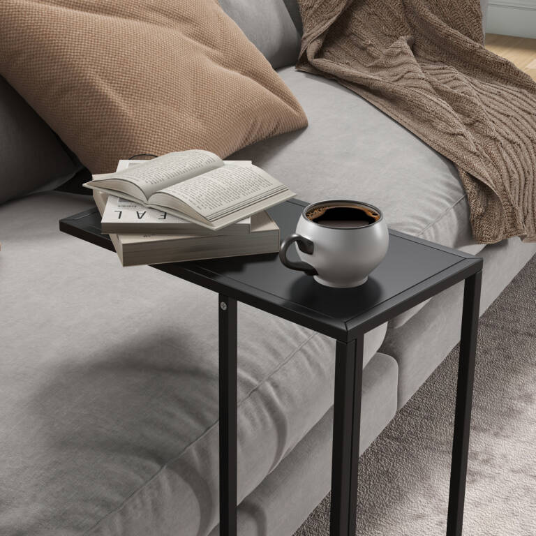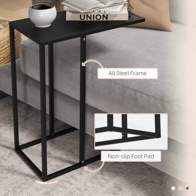Τραπεζάκι σαλονιού HOMCOM High and Industrial σε σχήμα C από ατσάλι, 46x26x60 cm, μαύρο 839-840V00BK