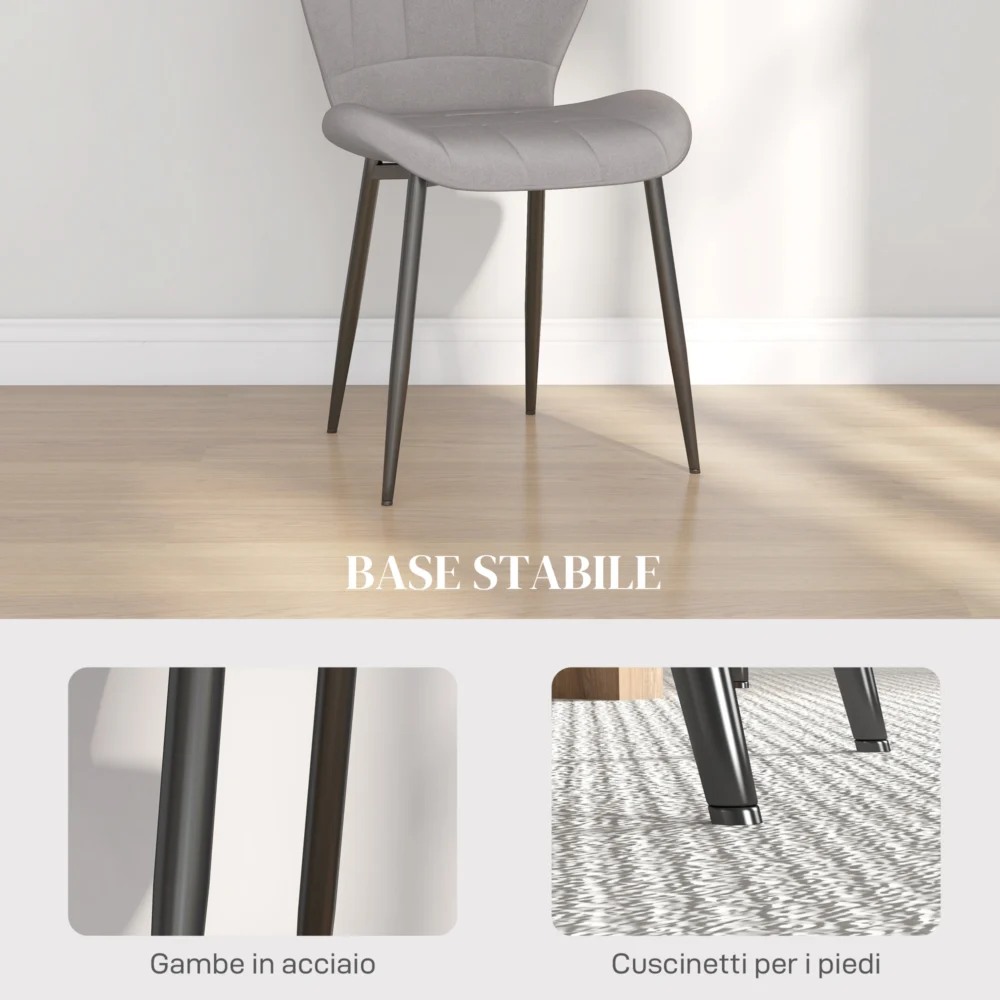 HOMCOM Σετ 4 μοντέρνες καρέκλες τραπεζαρίας για κουζίνα και σαλόνι με επένδυση φανέλας, γκρι 83A-135V00LG
