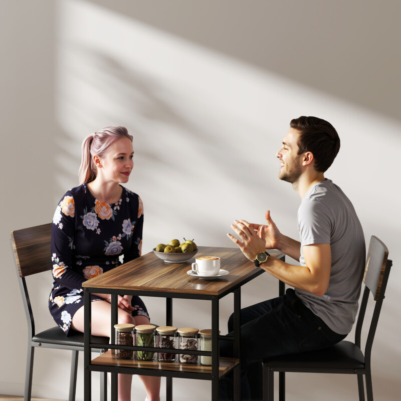 Μεταμορφώστε τον χώρο σας με το σετ HOMCOM που περιλαμβάνει ένα τραπέζι μπαρ και δύο επενδυμένα σκαμπό. Σχεδιασμένο για να προσφέρει άνεση και λειτουργικότητα, αυτό το σετ αποτελεί την ιδανική προσθήκη για μικρούς χώρους, επιτρέποντάς σας να διατηρείτε τα τρόφιμα και τα ποτά σας οργανωμένα με τους πρακτικούς ραφιέρες του.