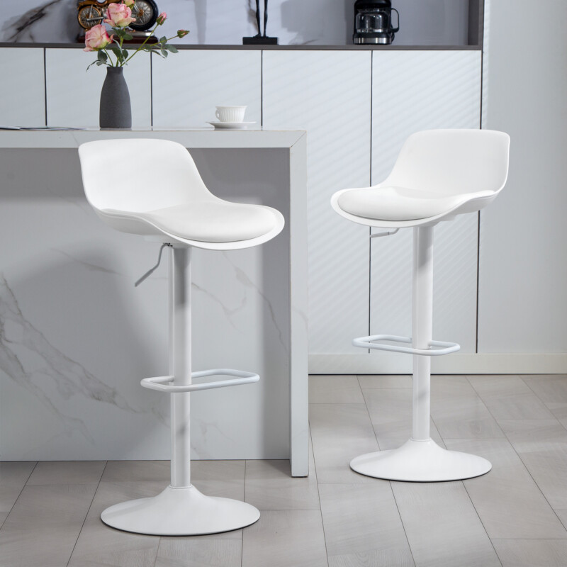 HOMCOM Σετ 2 Σκαμπό Μπαρ με Πλάτη, Ρυθμιζόμενο Ύψος, Περιστρεφόμενο Κάθισμα από Τεχνητό Δέρμα και Υποπόδιο, Λευκό 83A-346V00WT