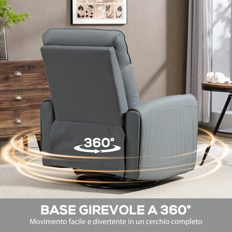 HOMCOM Χειροκίνητη Πολυθρόνα Χαλάρωσης με Υποπόδιο από Ύφασμα με Δερμάτινη Υφή και Περιστρεφόμενη Βάση, Γκρι 83B-593V00GY